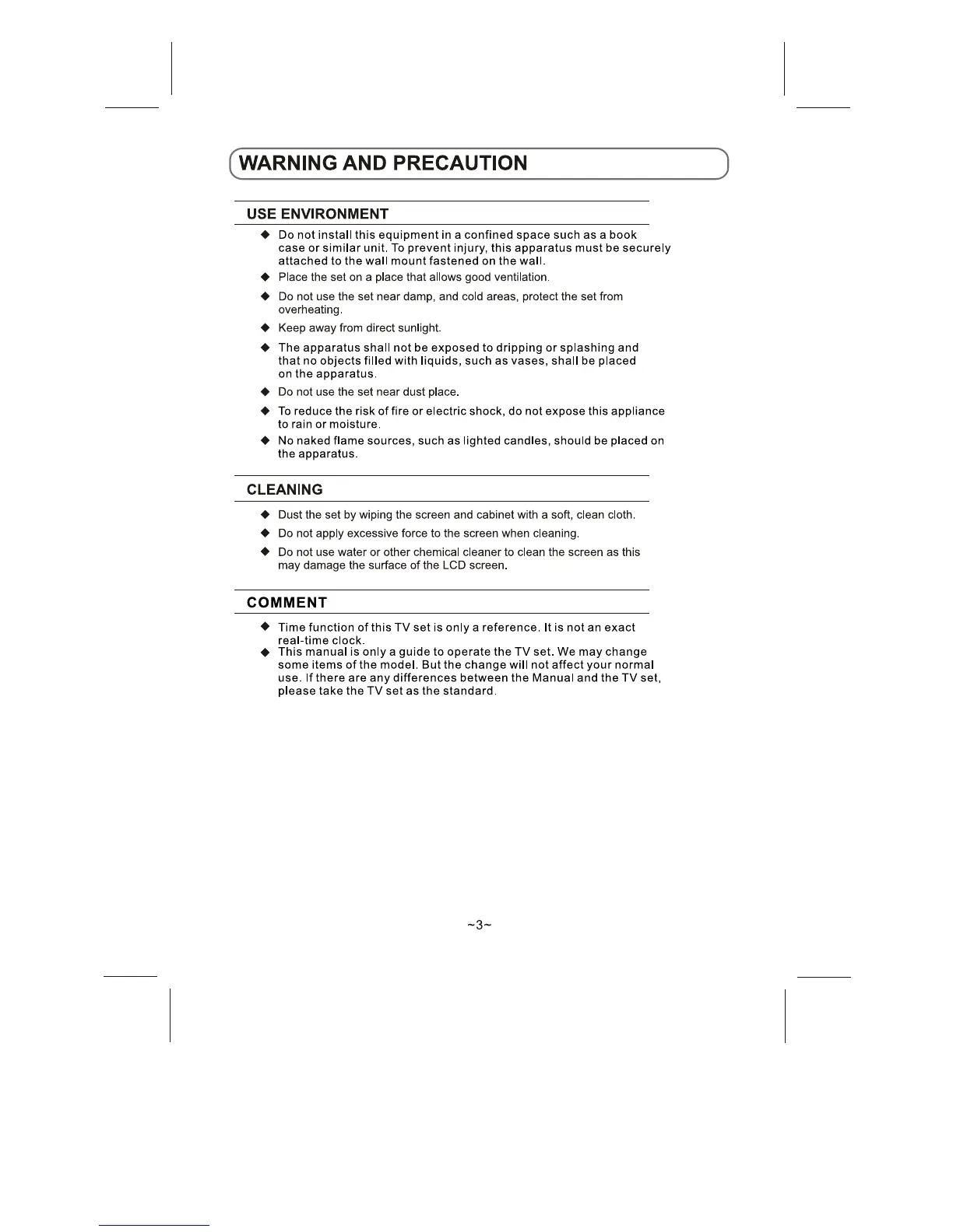 Skyworth LED-42E60 - USE ENVIRONMENT