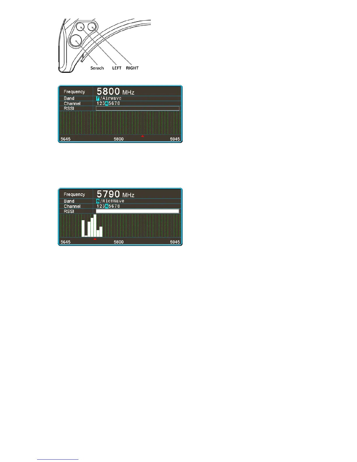 and the <RIGHT> to choose the desired channel manually. The band, channel and signal intensity in the
