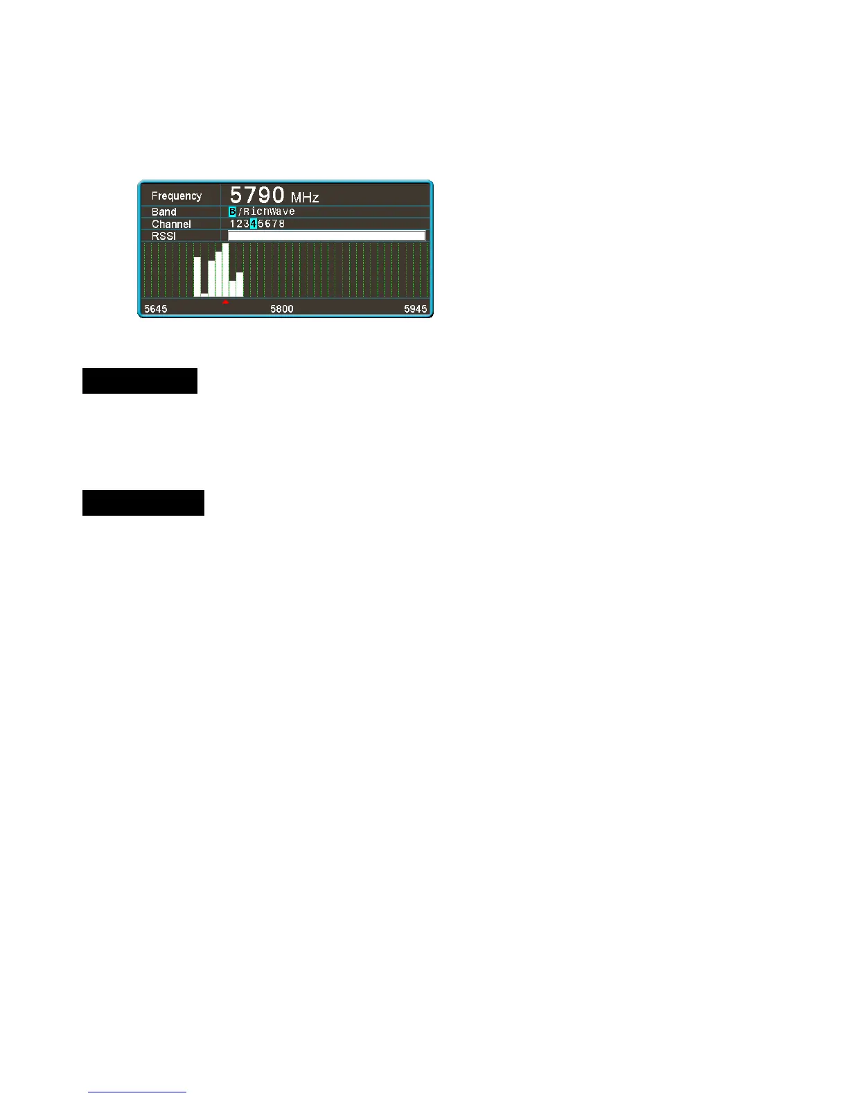 channel and the signal strength corresponding to the location of the triangle indicator will be updated in