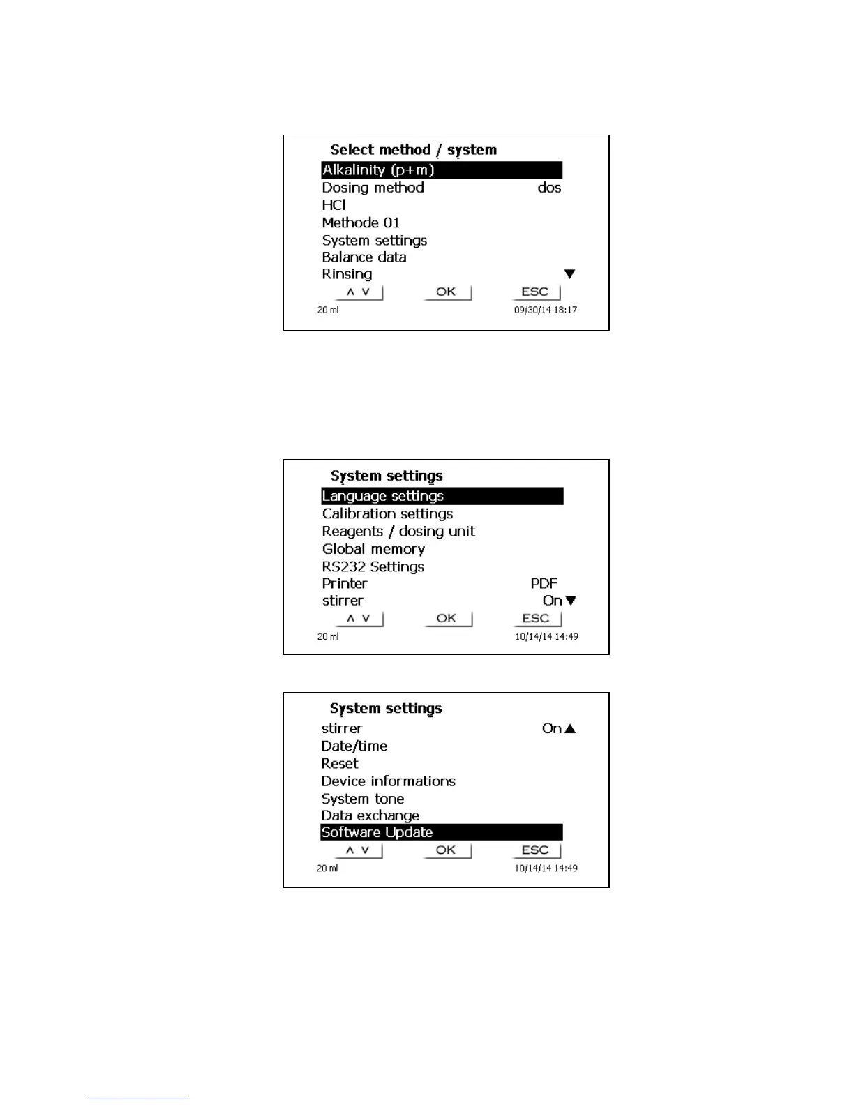 Existing methods (maximum 5) can be selected by pressing the <↓> und <↑> keys and confirming the