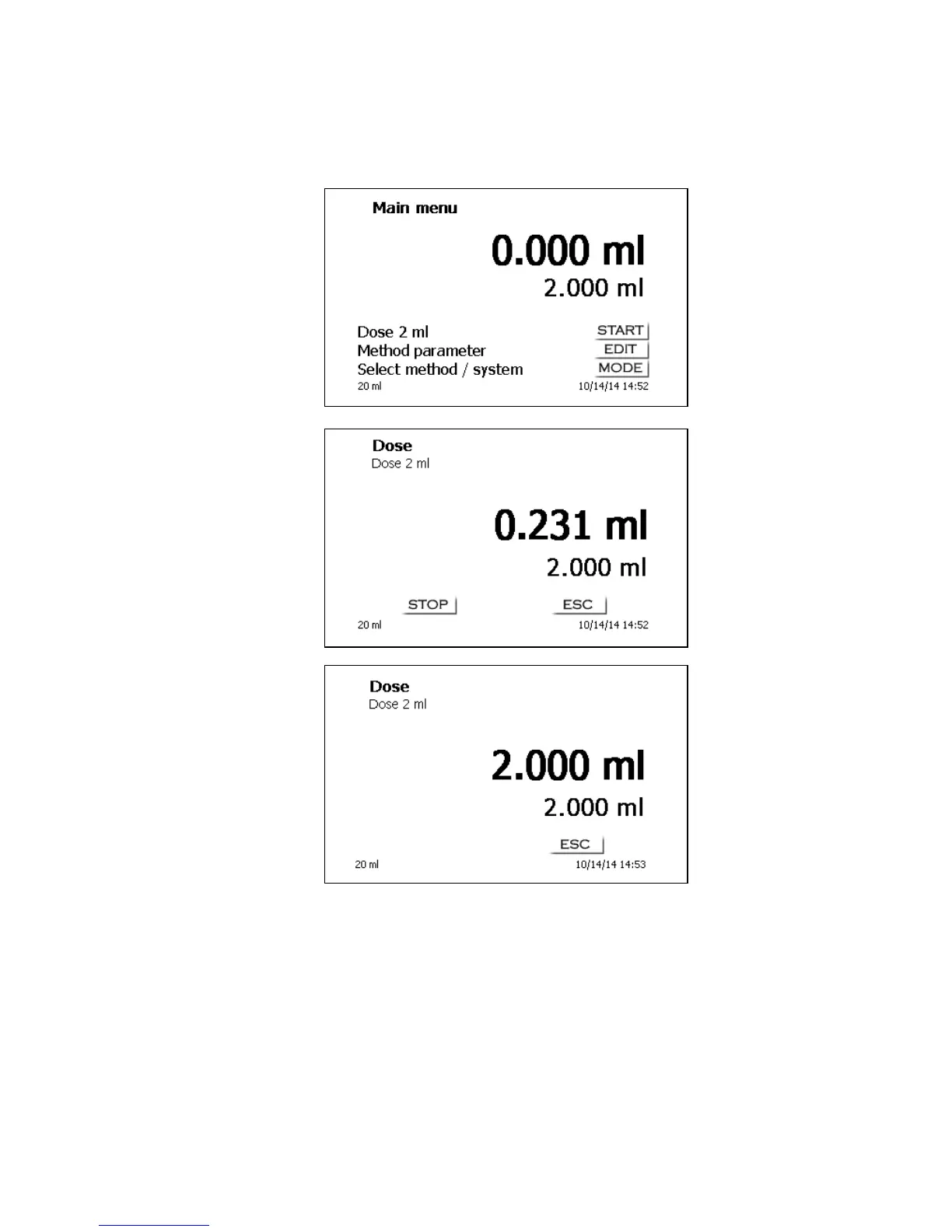 The dosed volume will be briefly displayed before the display returns to the main menu (Fig. 44)