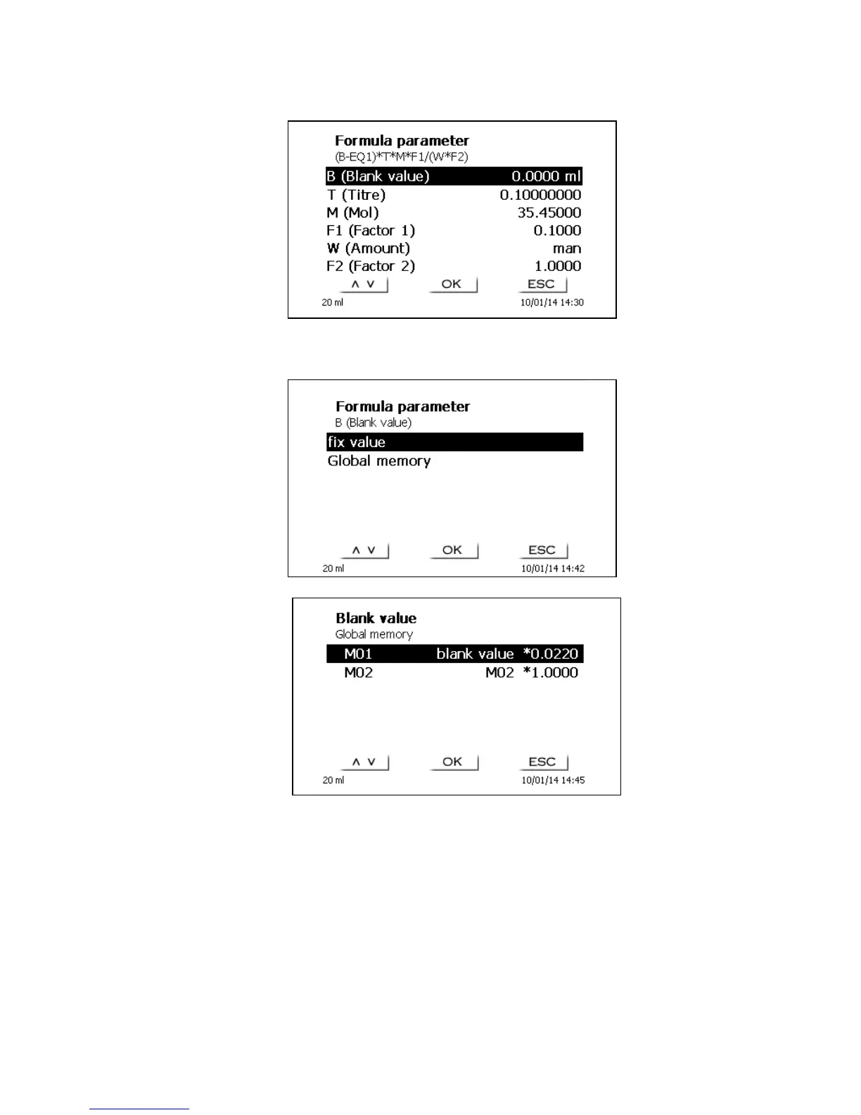 The values for the blank value, the titers and factors F1-F5 can be entered or read from a global