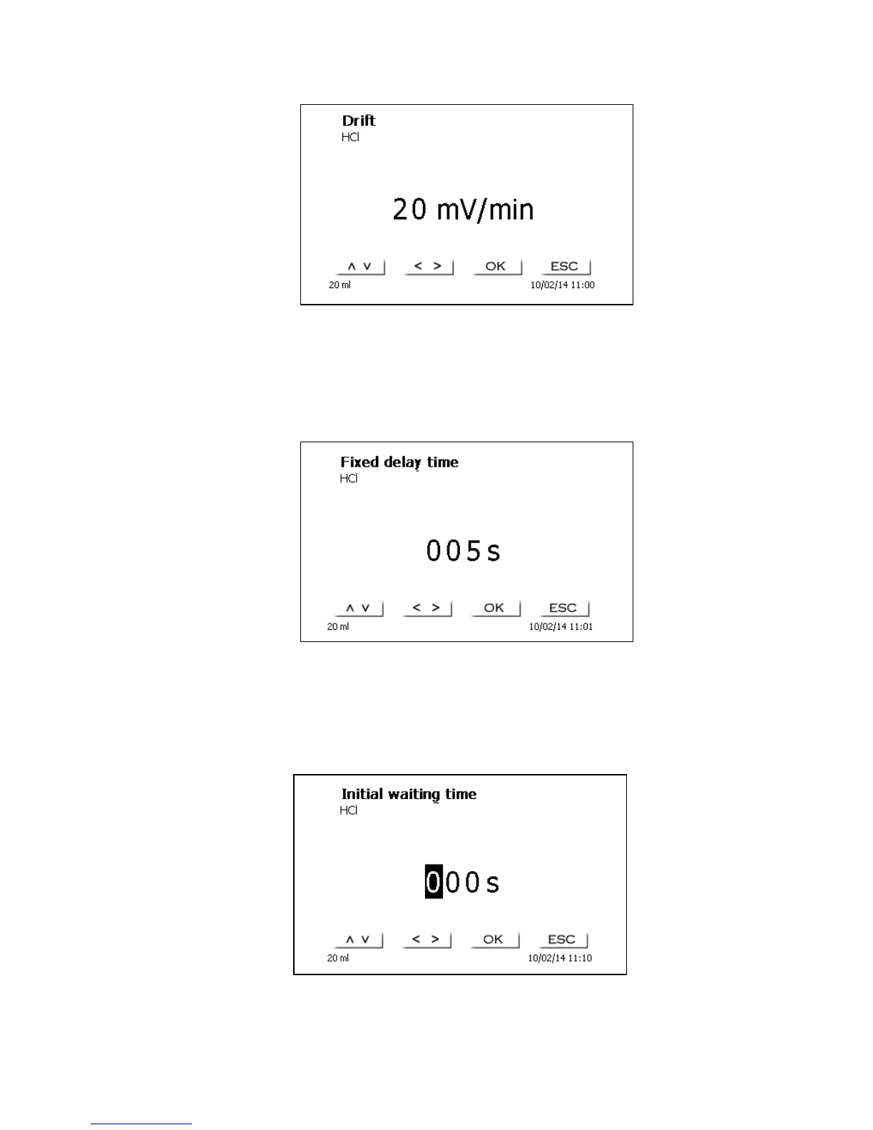 first addition of titration solution can be set using the <Initial waiting time> item. The initial waiting