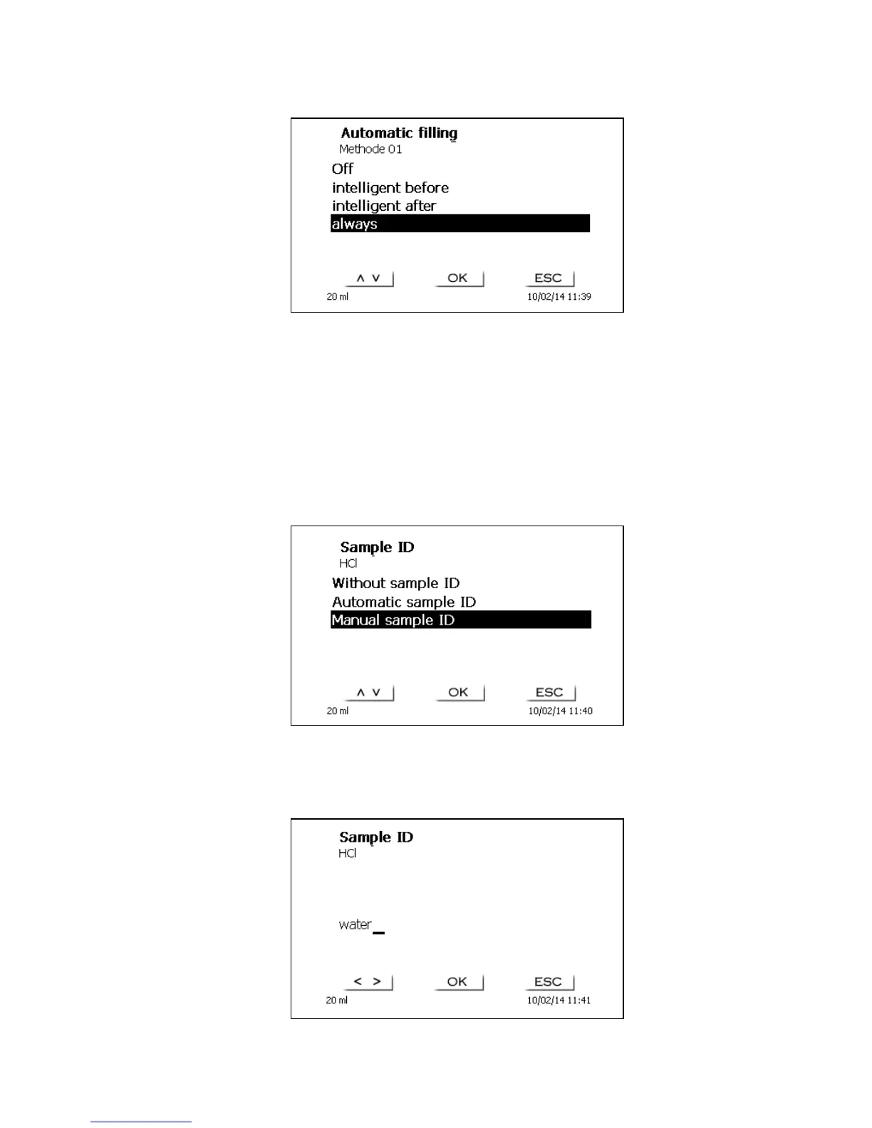 In the manual titration and in the preparation of solutions it is possible to input a sample identification.