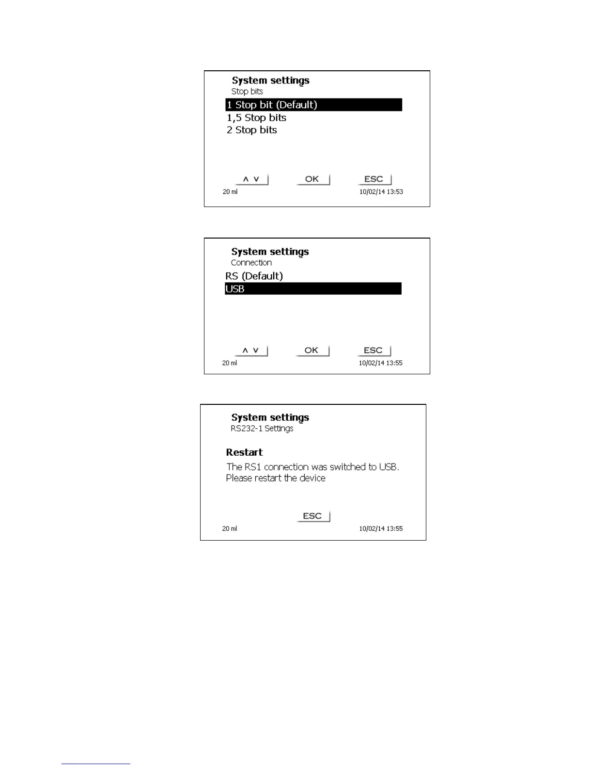 After switching from RS232 to USB and vice versa, a restart is always necessary.