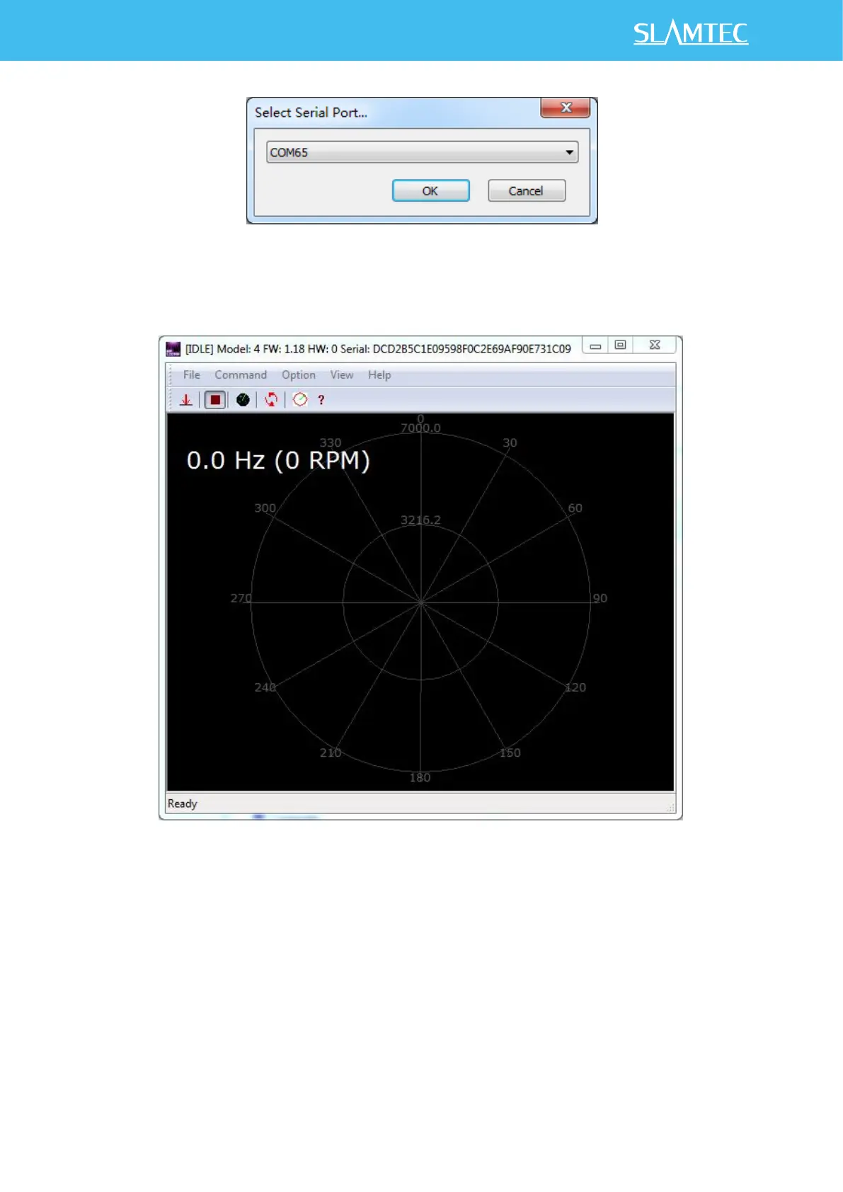 title line of the GUI. The supported commands of RPLIDAR are showed in the tool