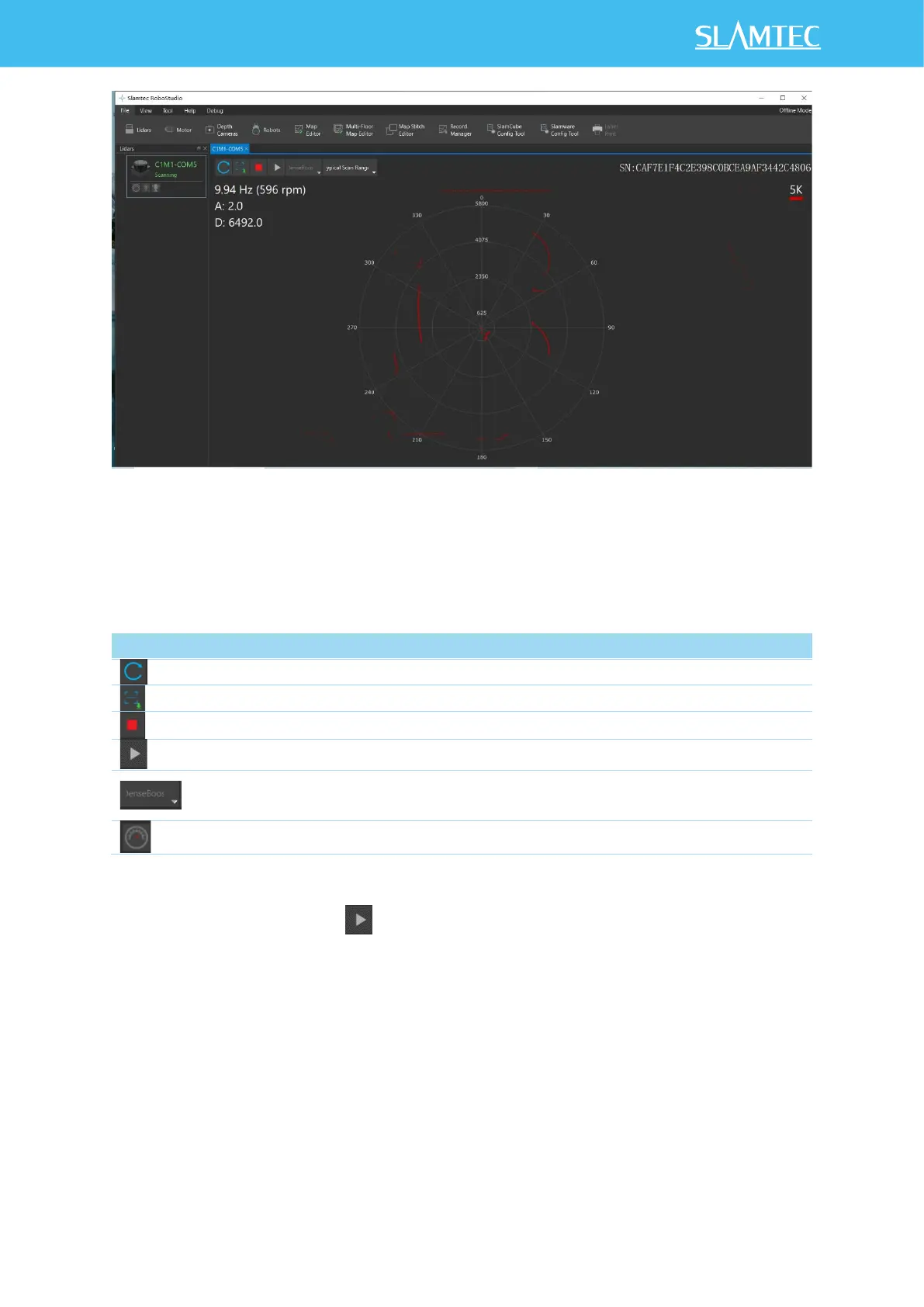 icon in the lidar control panel. The supported commands of RPLIDAR are