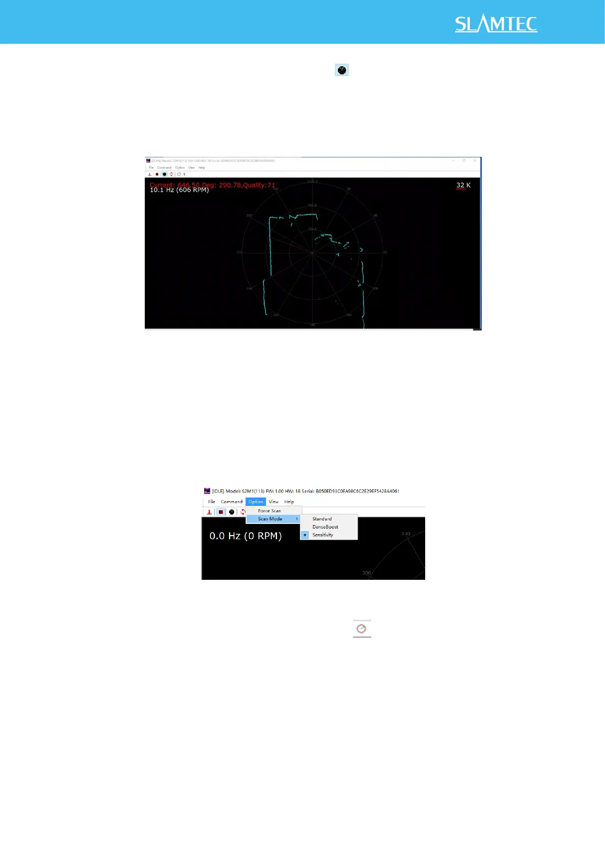 5)The RPLIDAR S2E supports three scan modes. The Sensitivity mode can