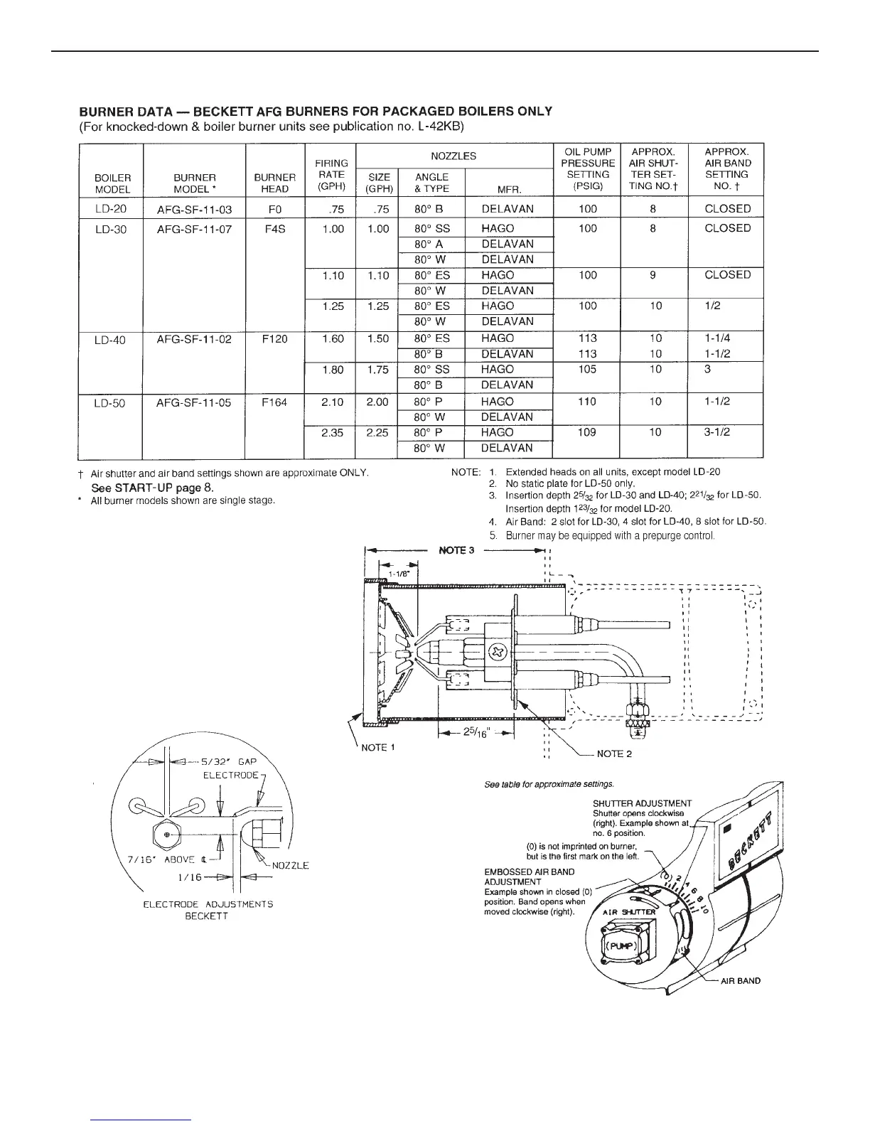 Slant/Fin BOILERS - BURNER DATA - BECKETT AFG BURNERS FOR PACKAGED BOILERS ONLY