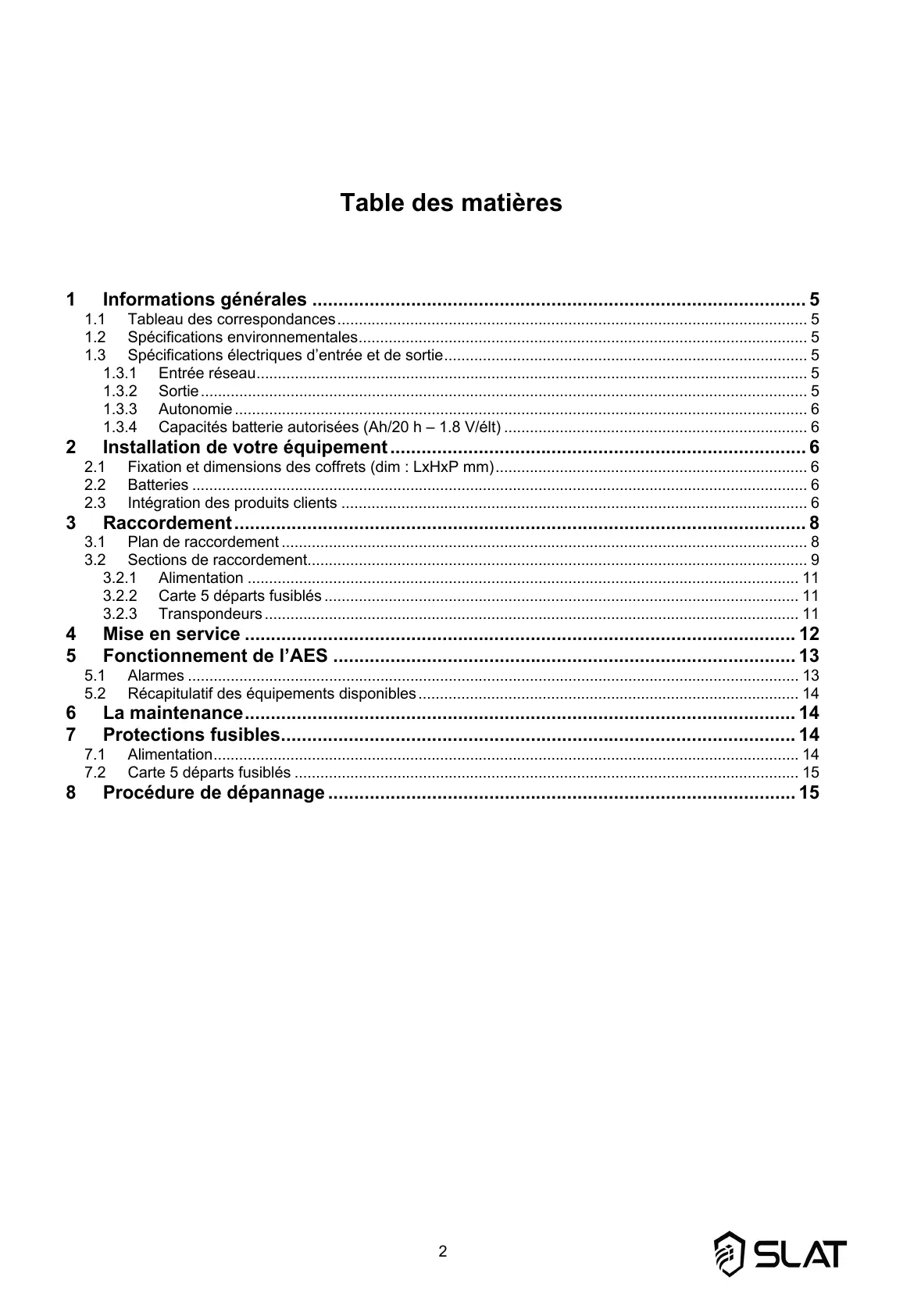 1.3.4 Capacités batterie autorisées (Ah/20 h – 1.8 V/élt) ....................................................................... 6