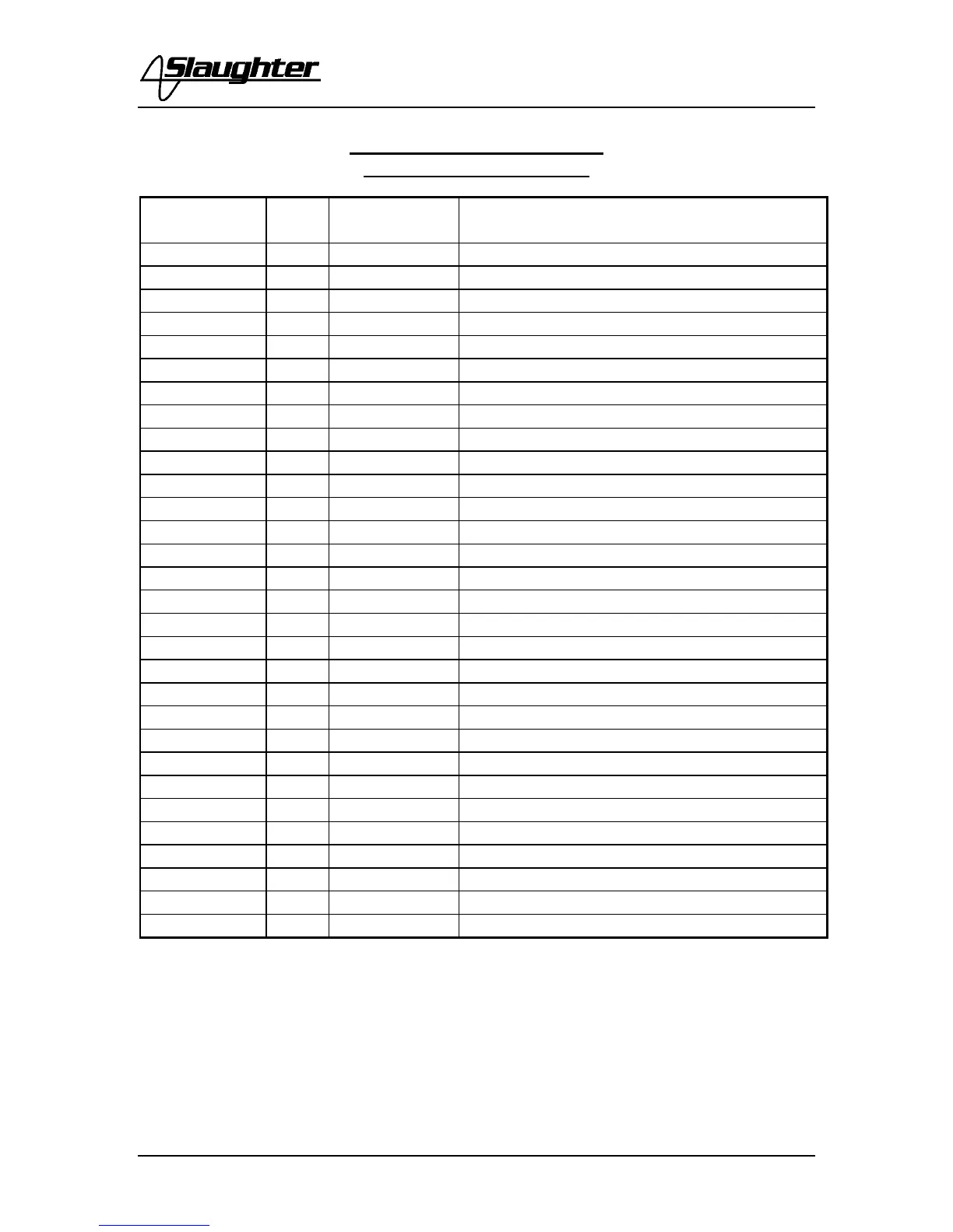 Slaughter 2925 - REPLACEMENT PARTS LIST