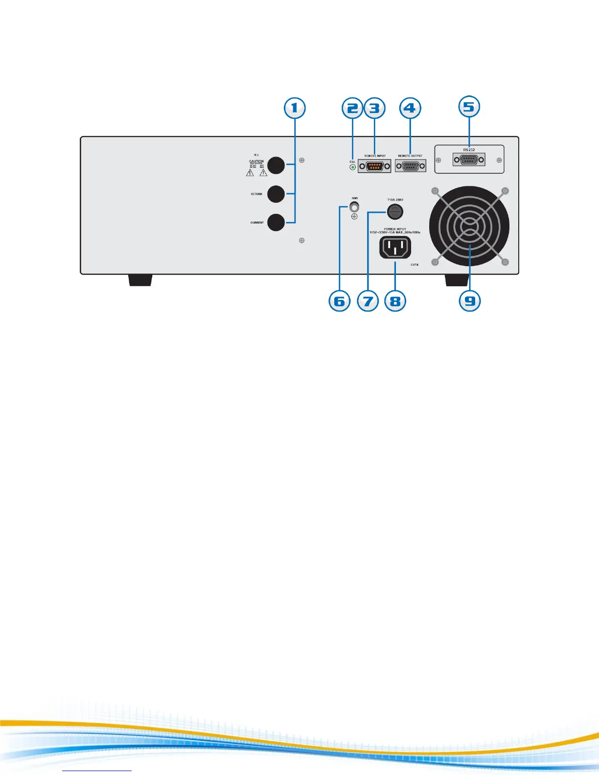 4. REMOTE OUTPUT: 9 pin D subminiature female connector for monitoring PASS, FAIL, and PROCESSING