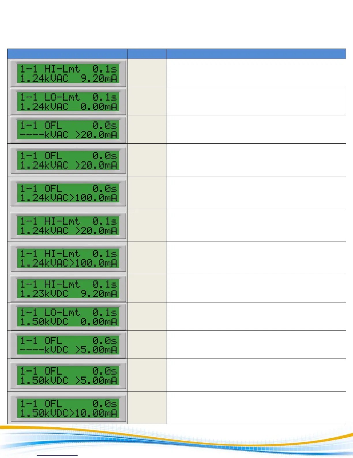 4520 only. Displayed if a flash over occurs in the DUT during