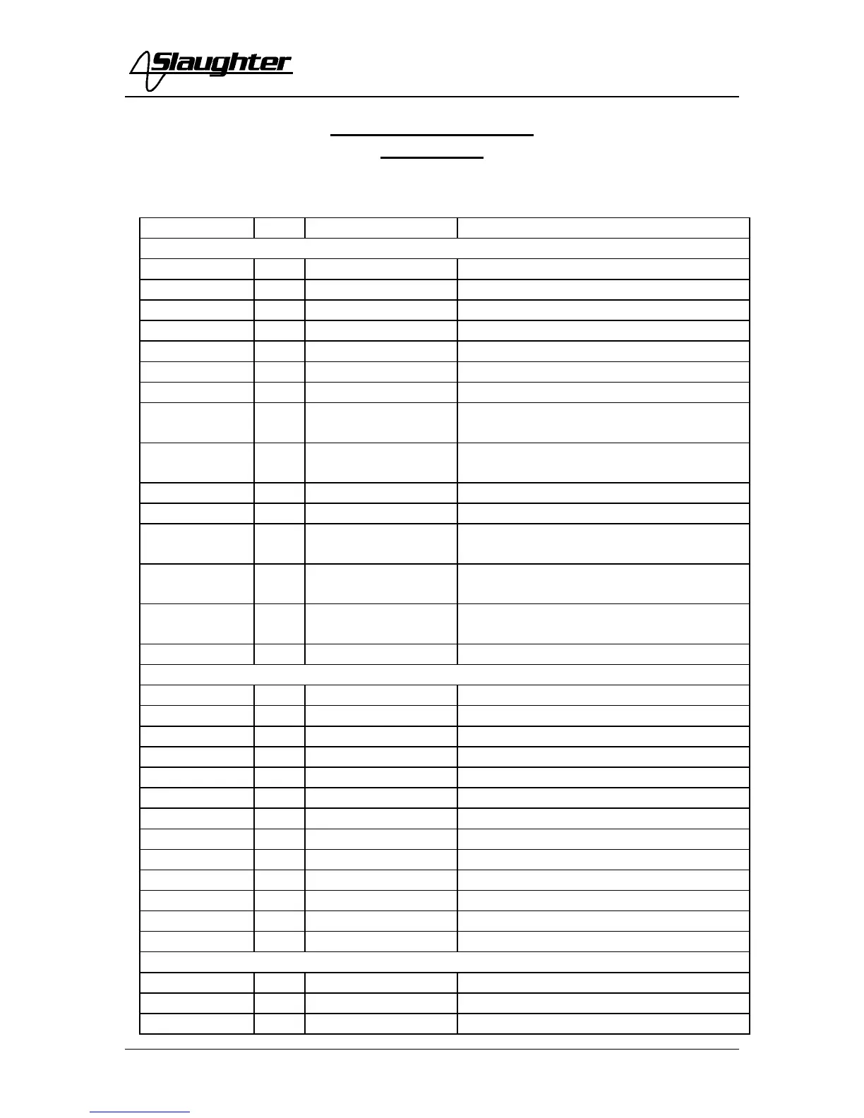 Replacement Parts List