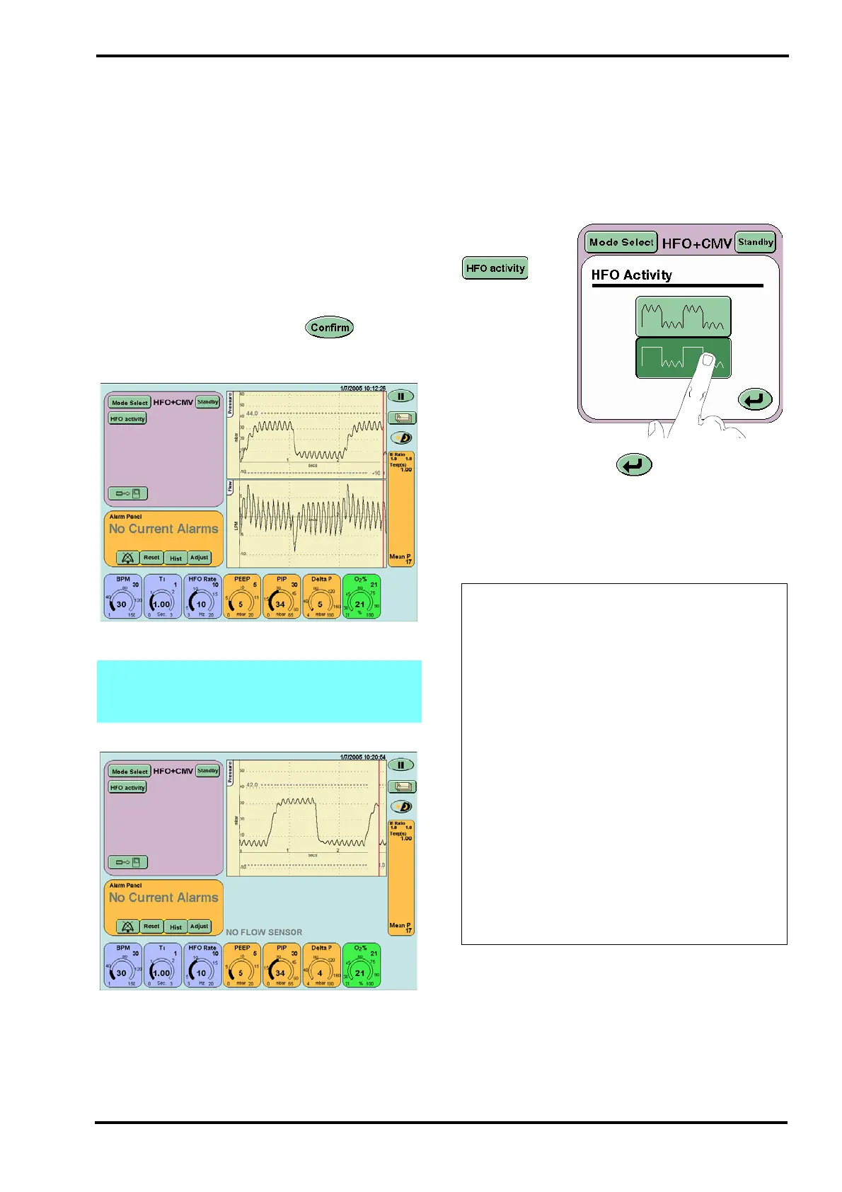 will be presented with the HFO + CMV screen.
