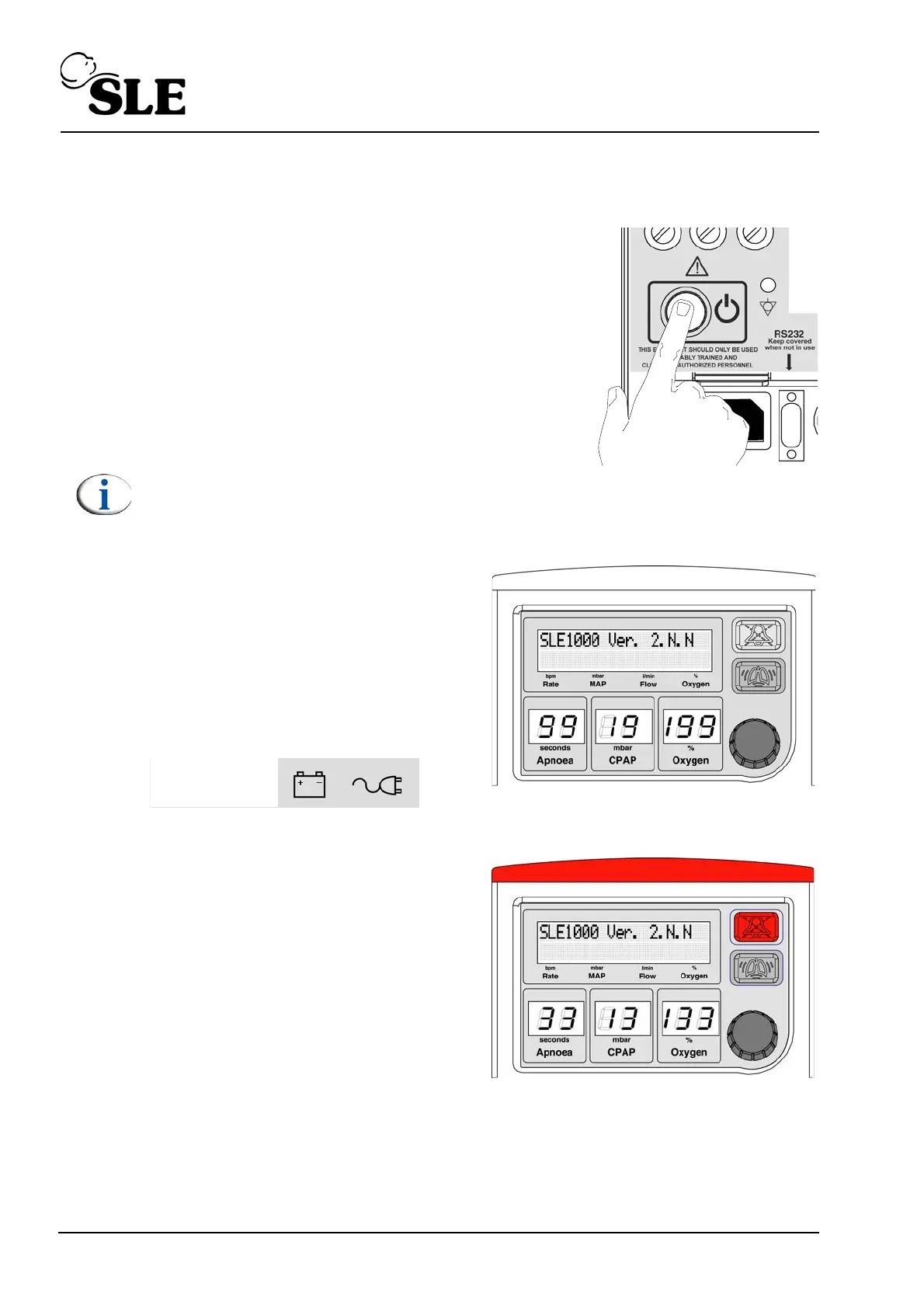 Note: If the battery indicator and mains indicator lights on the front panel