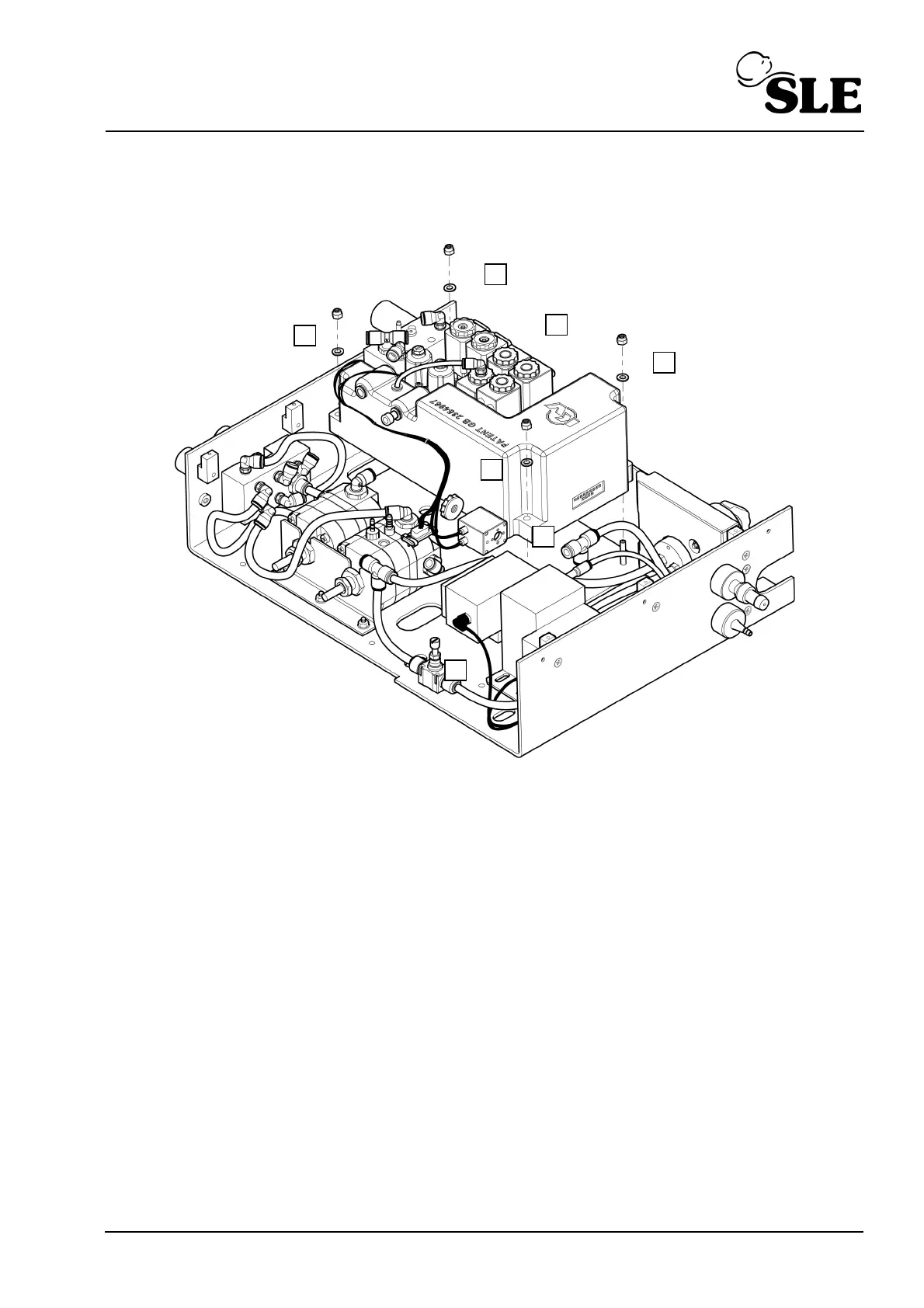 4. Lift the manifold assembly (J) off the four chassis studs.