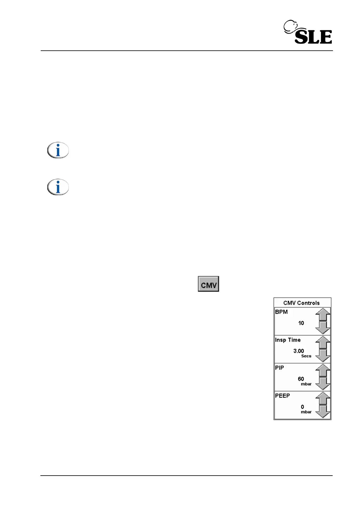 i) Set up the ventilator to CMV mode and set the following parameters: