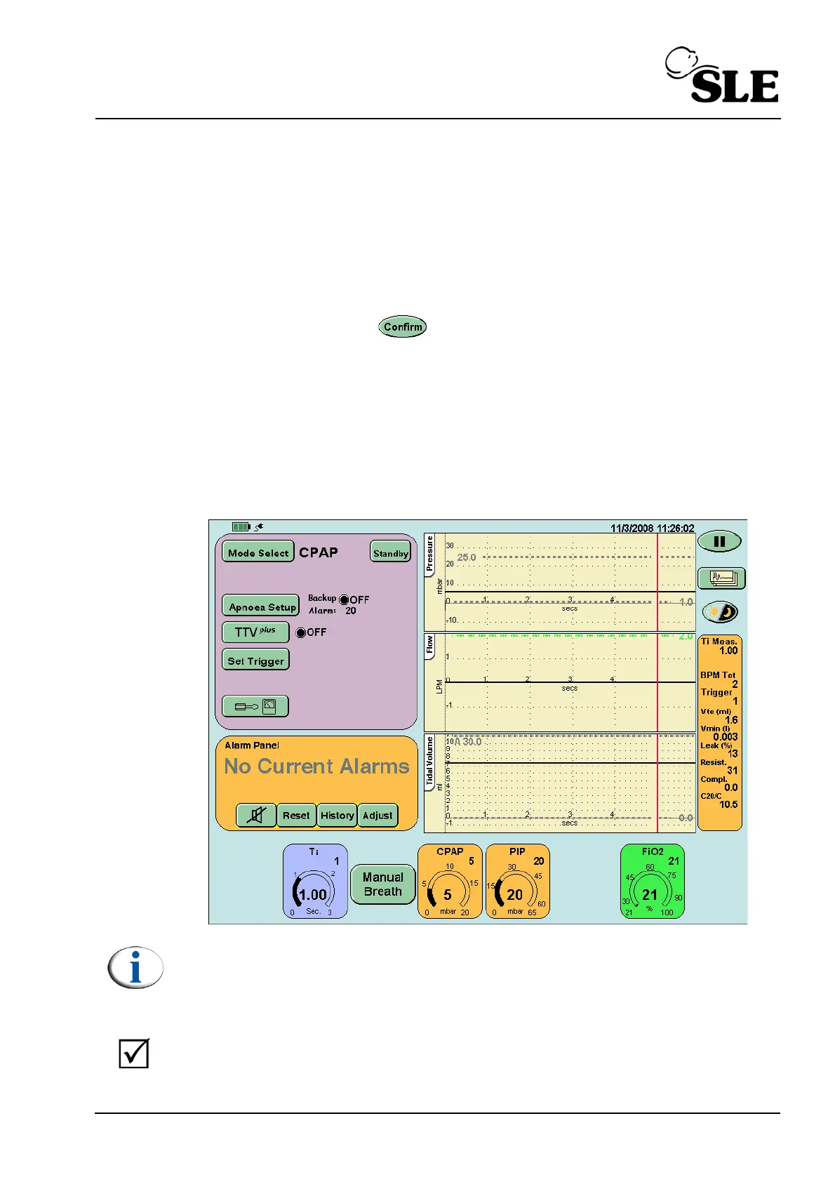 Backup is set to OFF and apnoea is detected after 20 seconds