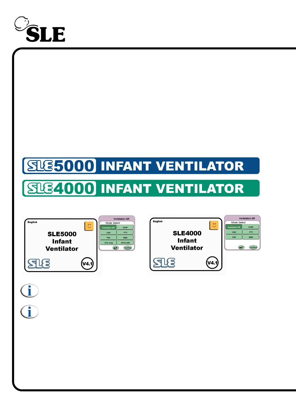 This user manual details the operation of the SLE4000 and SLE5000 infant ventilators. The