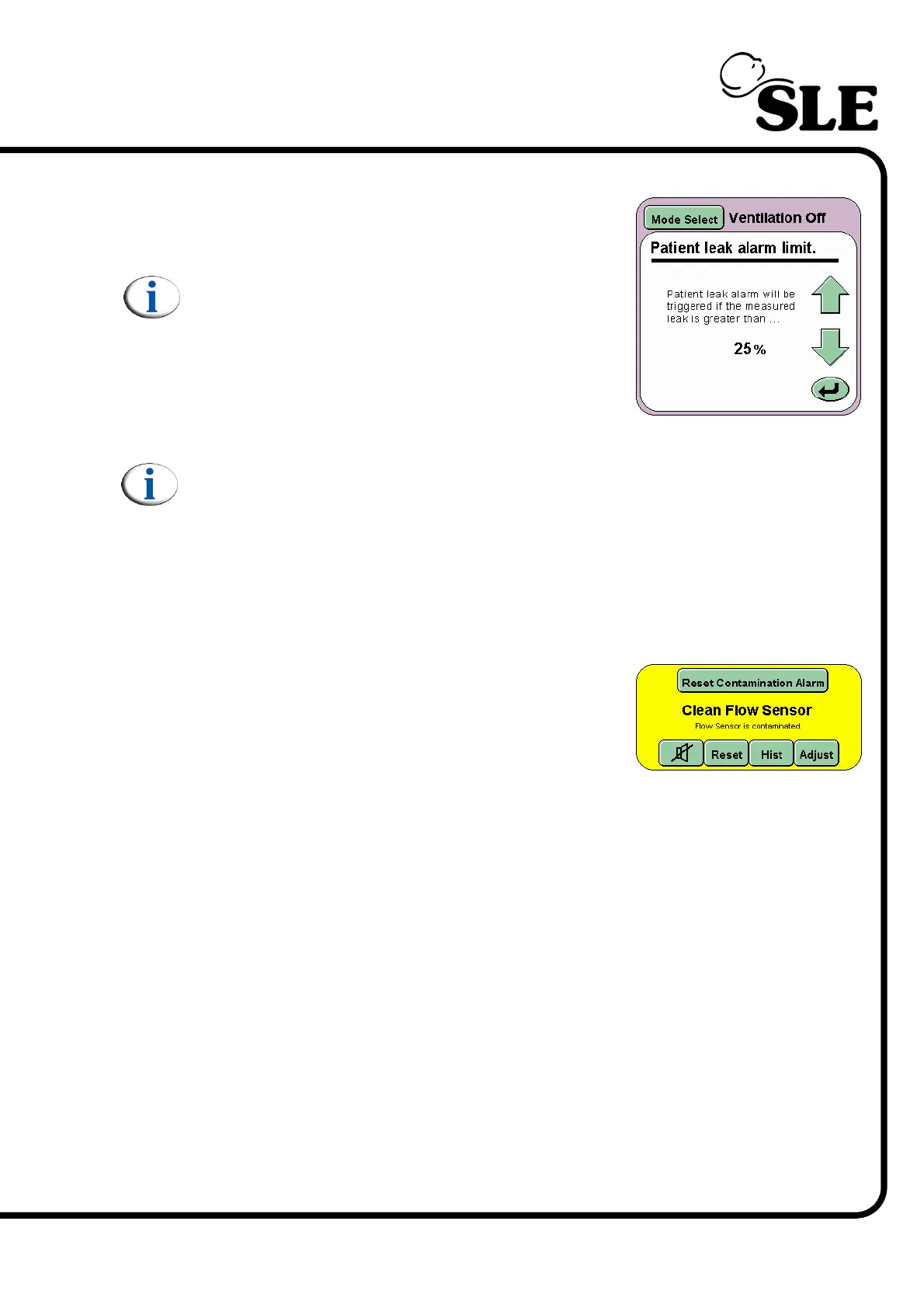 Note: If a patient leak alarm is triggered the user