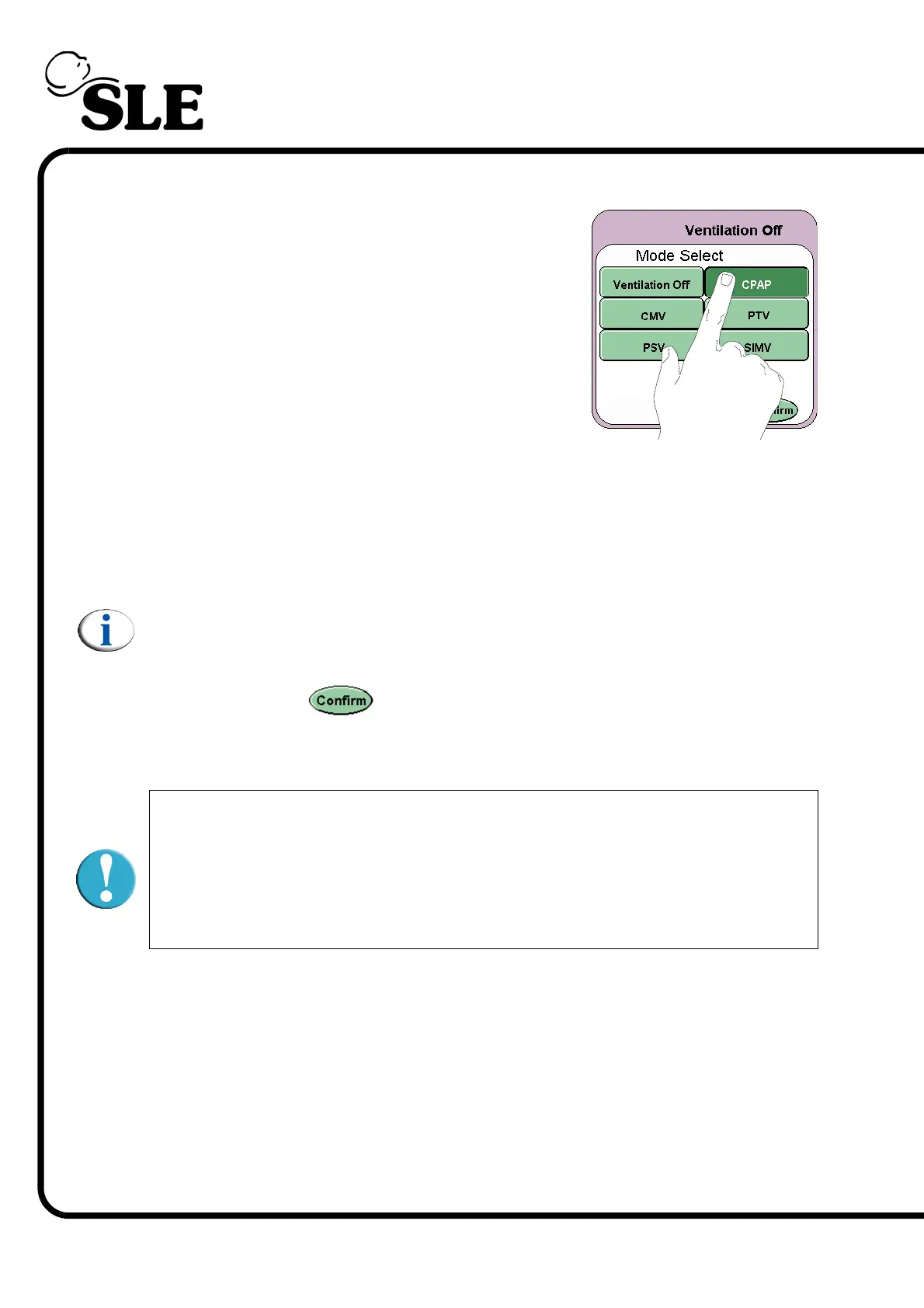 Step 3. Press the Confirm button to enter the CPAP mode. The ventilator will