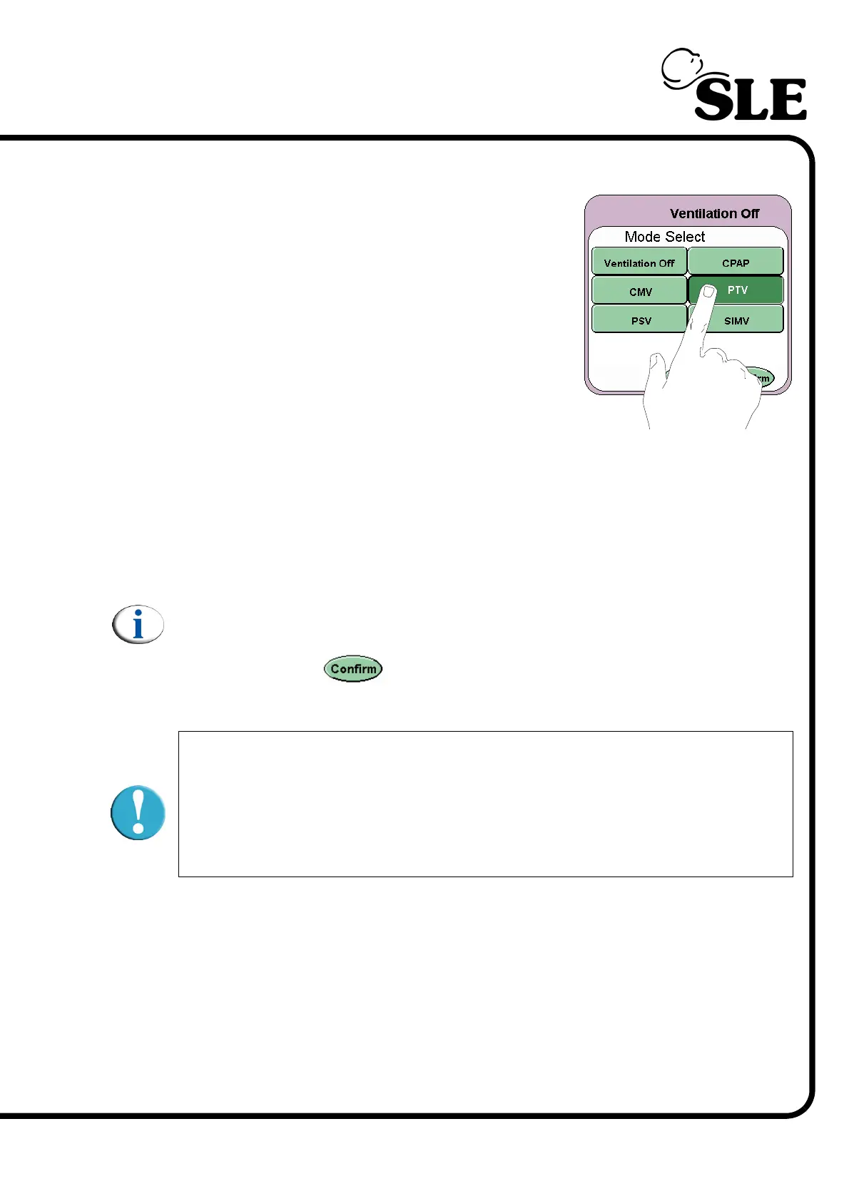 Step 3. Press the Confirm button to enter the PTV mode. The ventilator will now