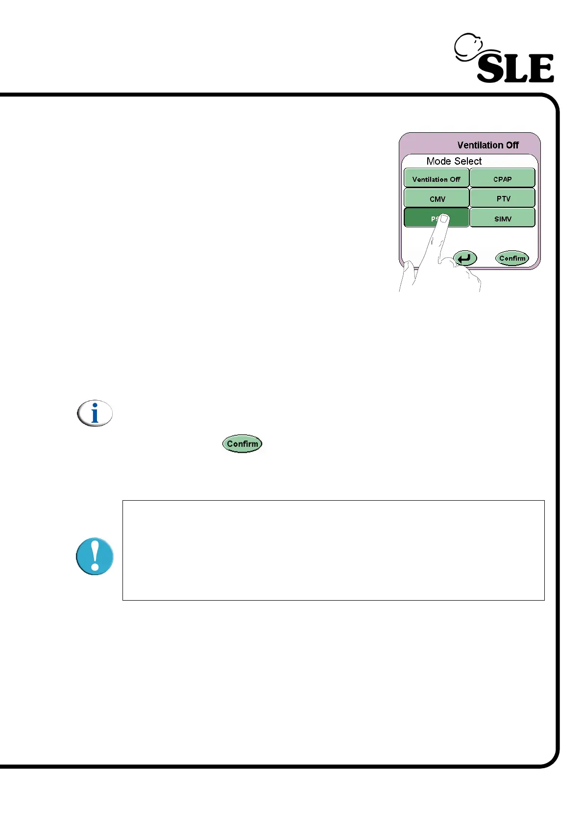 Step 3. Press the Confirm button to enter the PSV mode. The ventilator will now