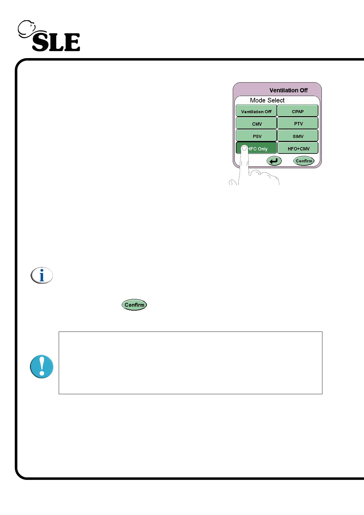 Step 3. Press the Confirm button to enter the HFO Only mode. The ventilator