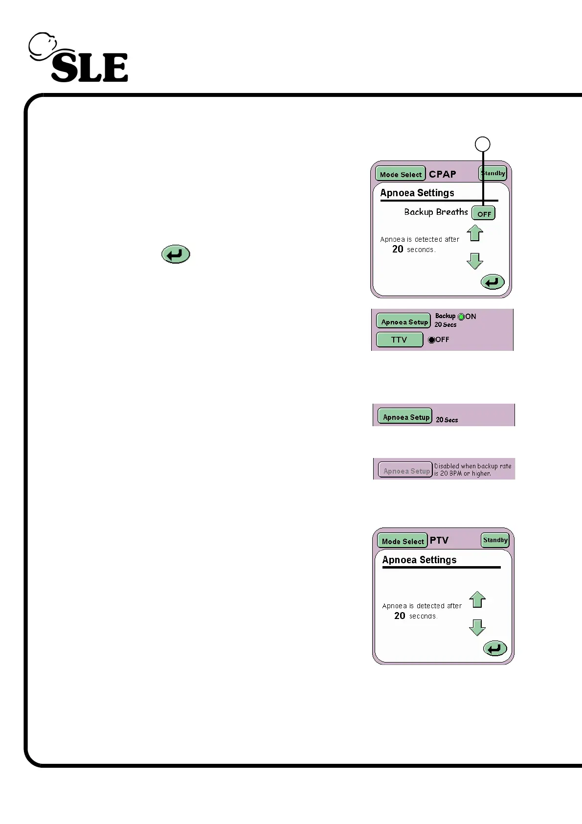 For PTV, PSV and SIMV the Apnoea setup button