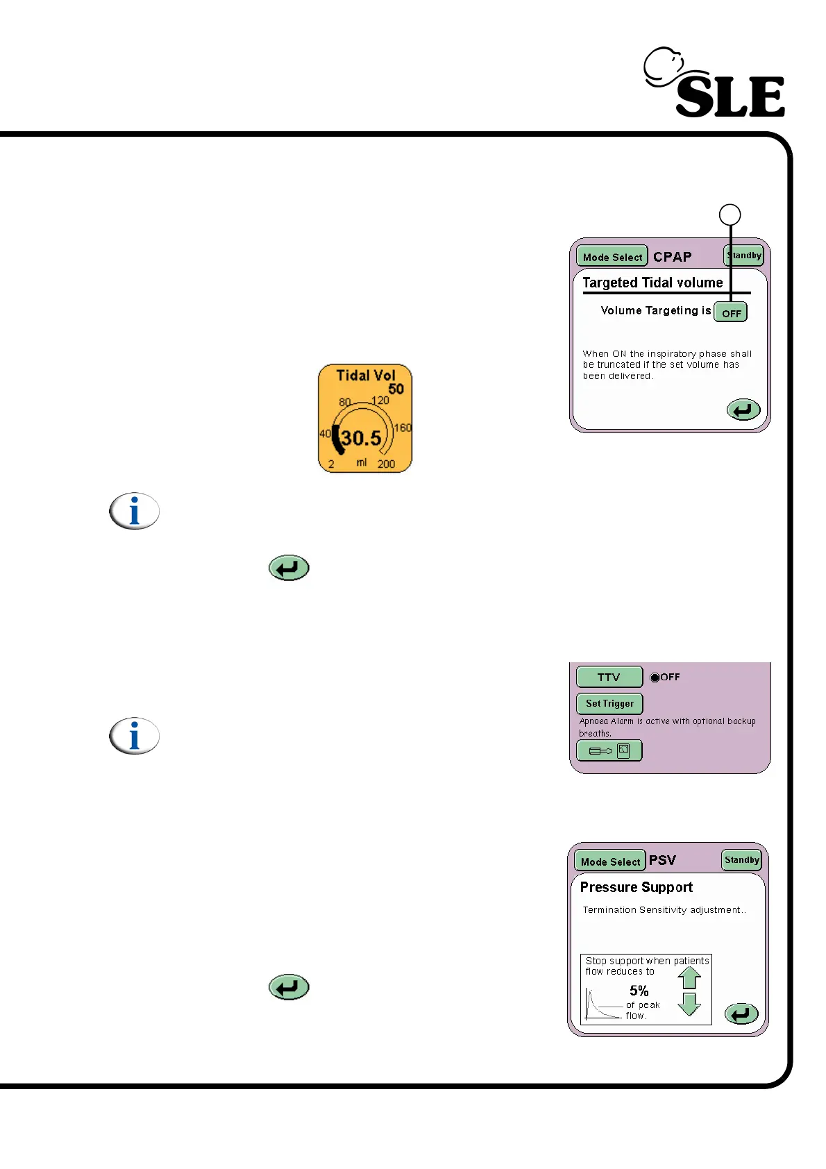 Note: When TTV has been selected the inspiratory time (Ti) and the Peak