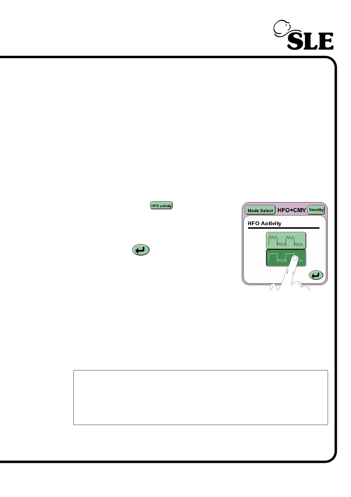 For the SLE5000 ventilator: Select HFO+CMV from the Mode Select panel, but