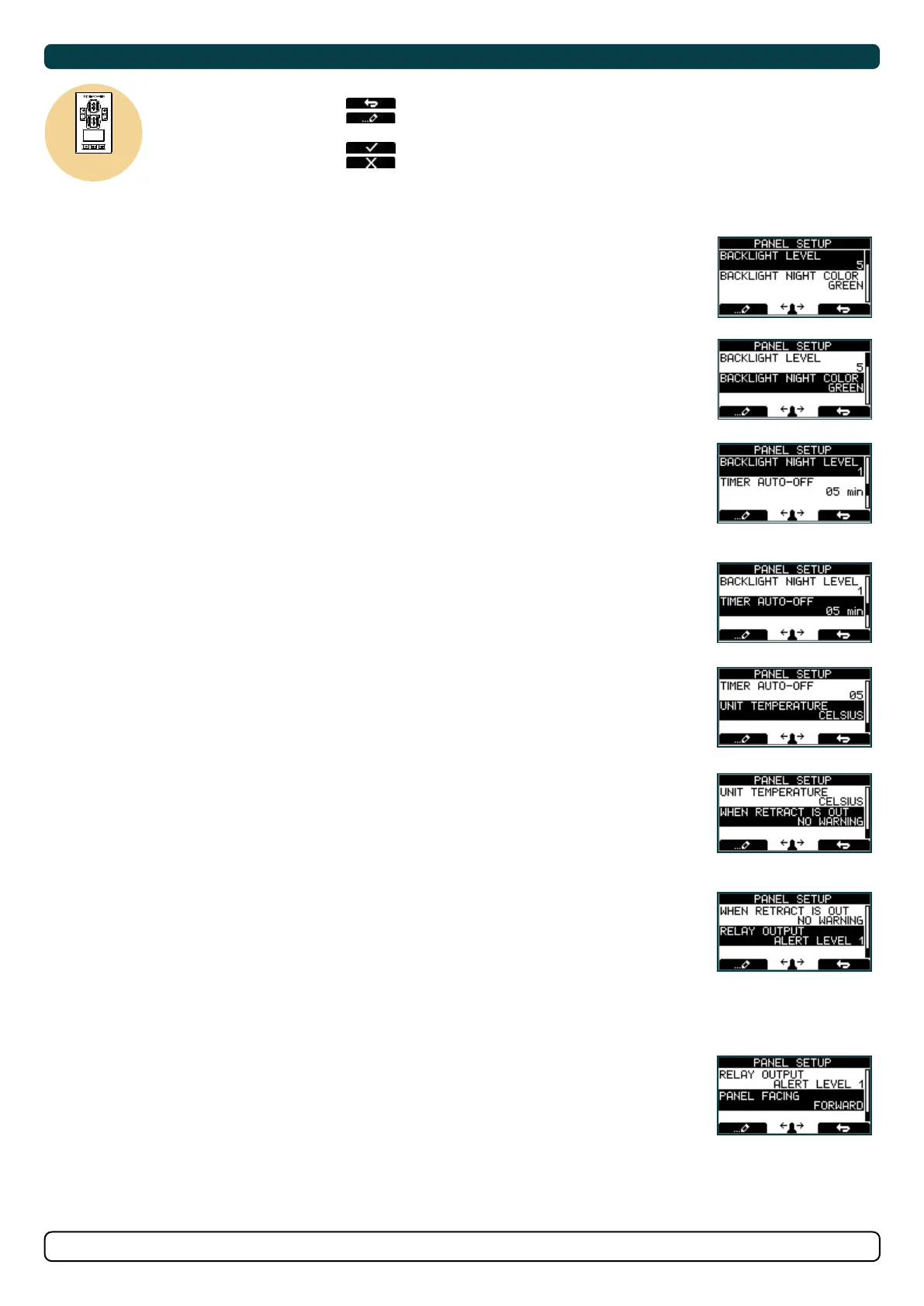 from 1 to 5 minutes) or OFF (panel will not turn off automatically). Values when retract on the boat: 1-30 min.