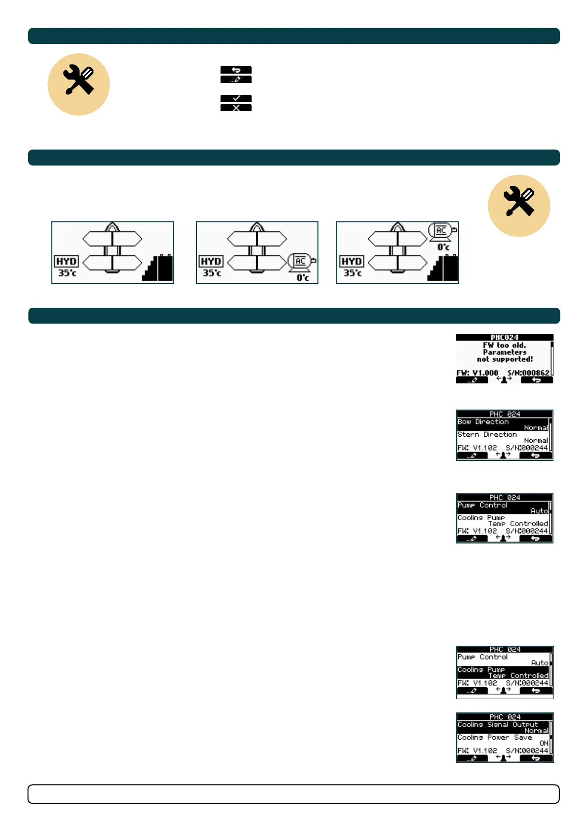 Confi guration of parameters is not supported with PHC024 fi rmware older than V1.101. This indicated by a