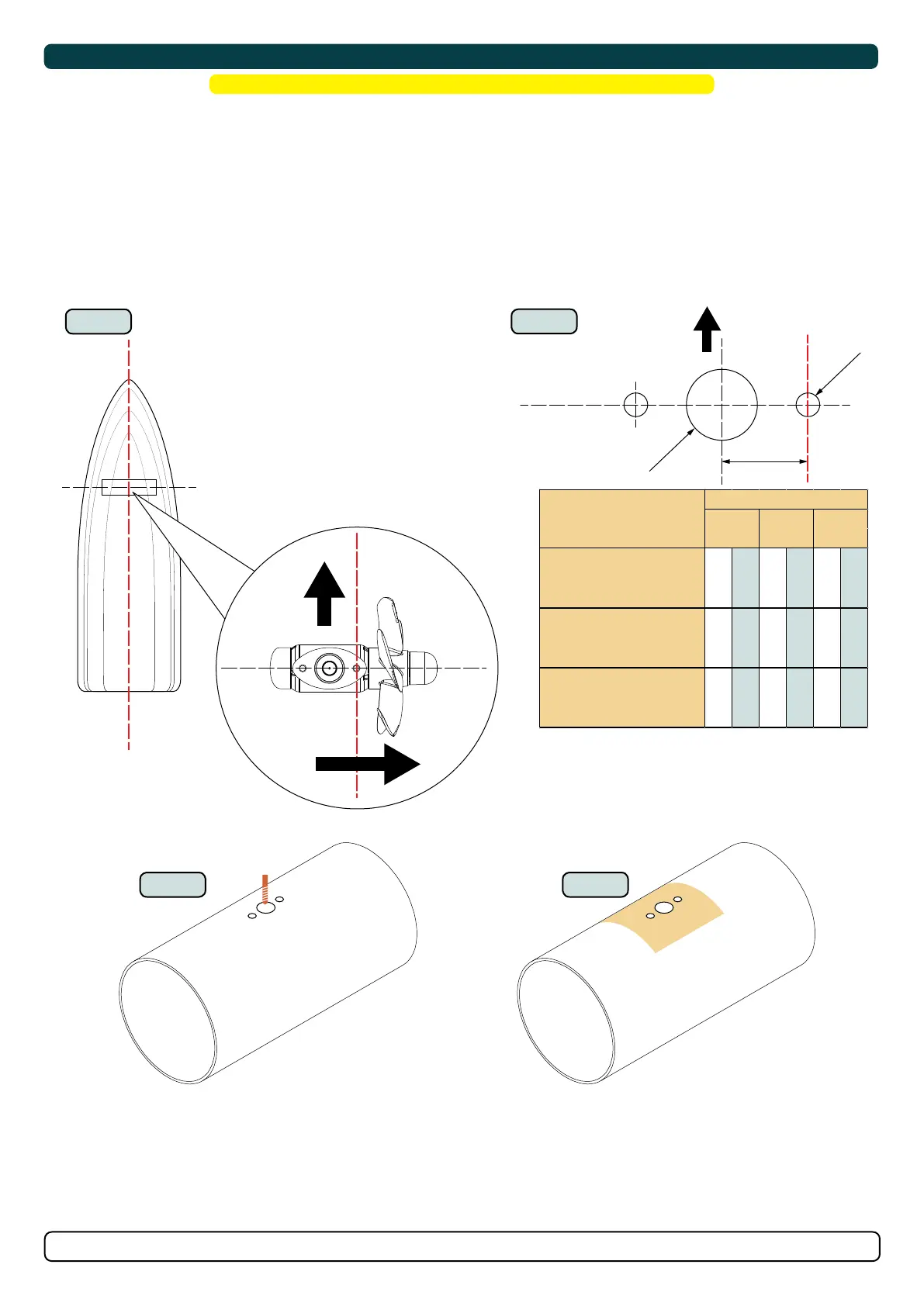 the boat centreline as shown above. (NB: All holes must be in-line with the tunnels’ centreline for correct installation, clearance between the