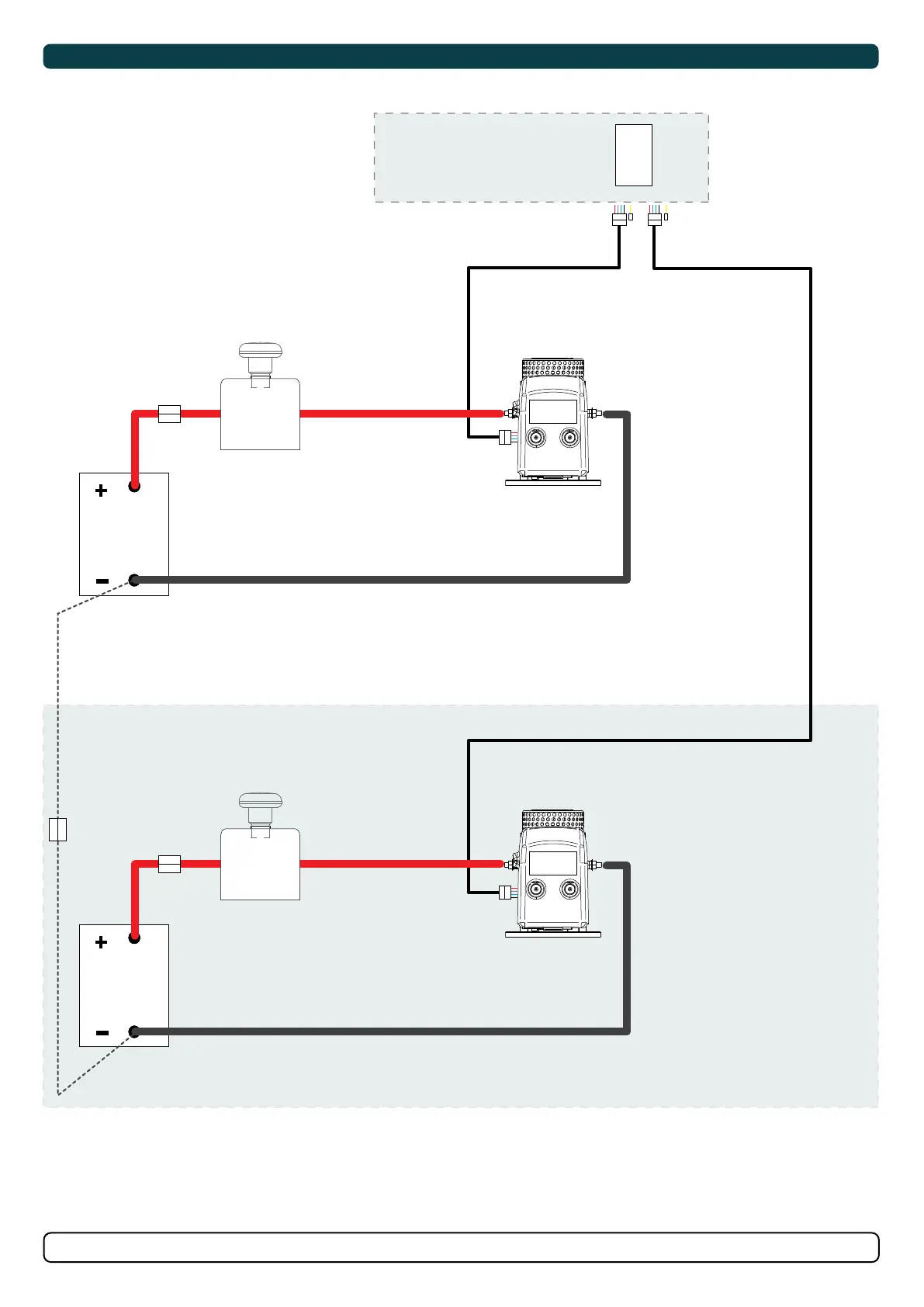 The top and bottom wiring diagram is for a dual thruster system, for example a bow and stern installation.