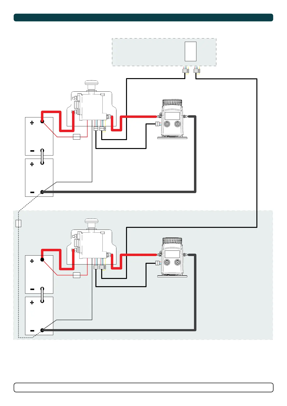 The top and bottom wiring diagram is for a dual thruster system, for example a bow and stern installation.