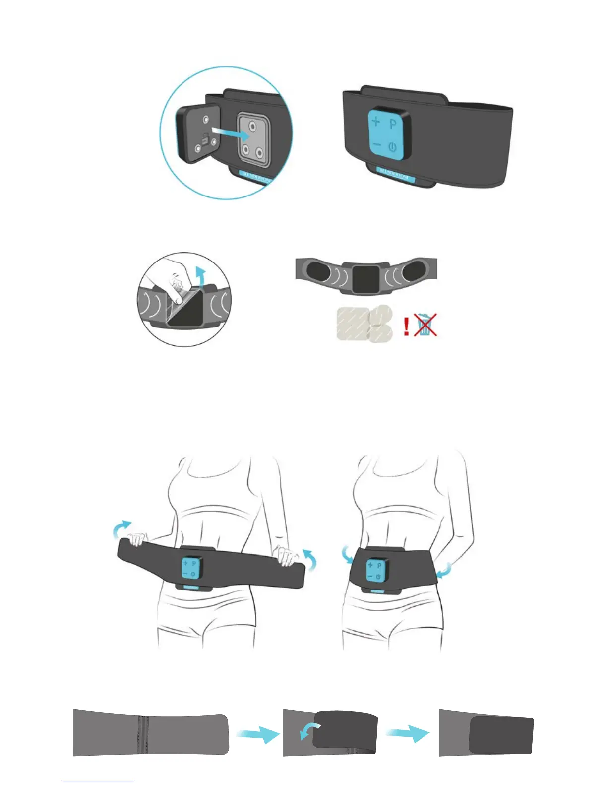 Wrap the belt around your waist so that the gel pads are pressed firmly against your skin, positioning the large
