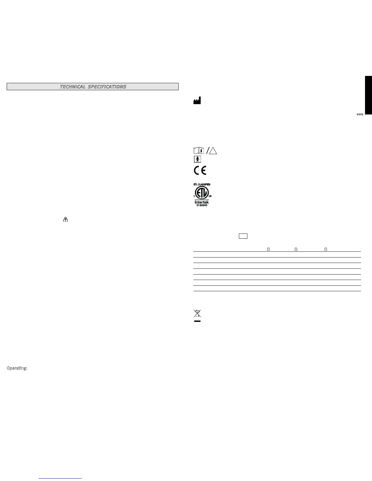Waveform: Symmetrical bi-phasic square waveform when measured into a resistive load.