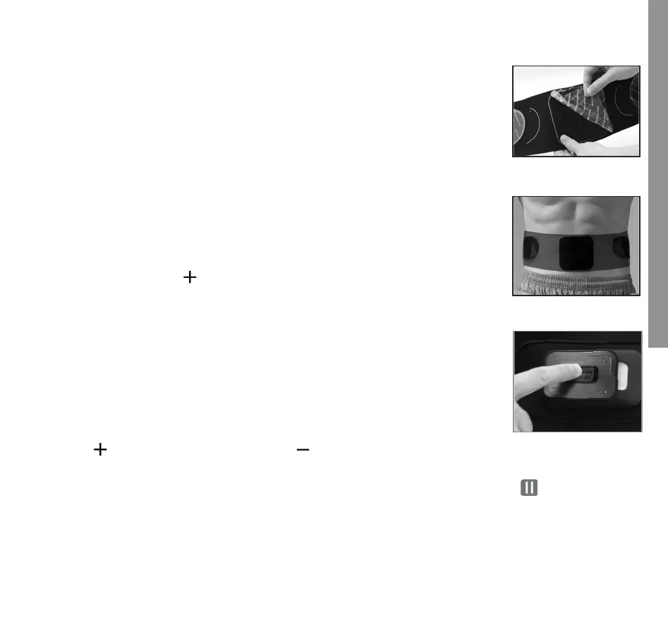 berühren. Ziehen Sie den Gürtel fest und drücken Sie jedes Gelpad fest gegen Ihre Haut. Sie