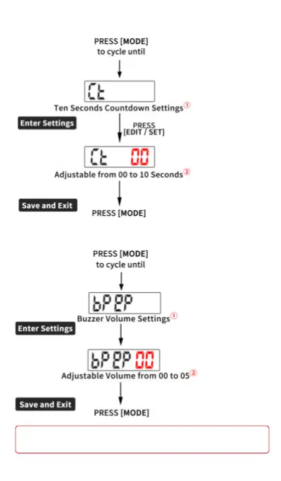 SLEVIO SS-FT31 - Ten Seconds Countdown Setting; Buzzer Volume Setting