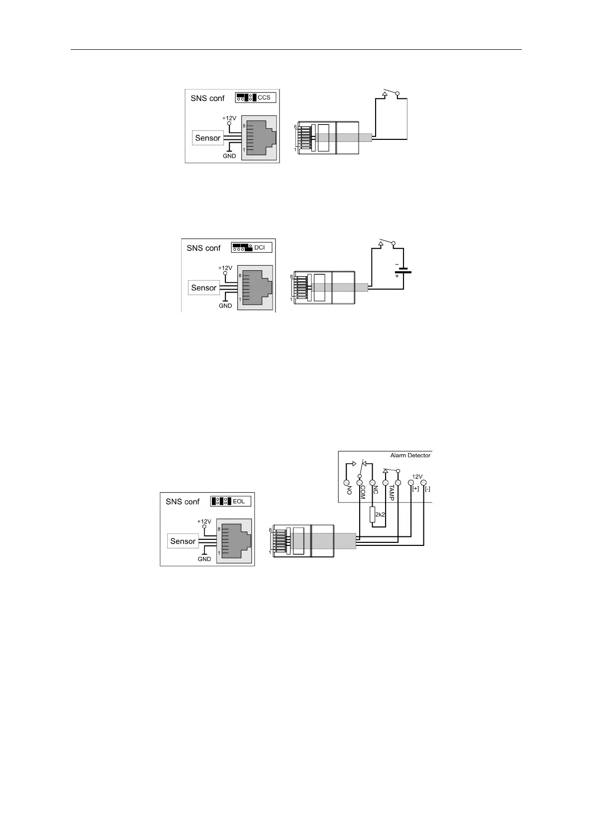 The sensor is triggered after the loop is closed. Maximum resistance of the loop is 1 kΩ.