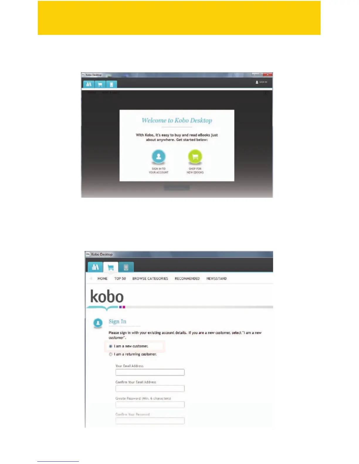9. If this is your rst time trying to connect to the Kobo store, select “I am a new