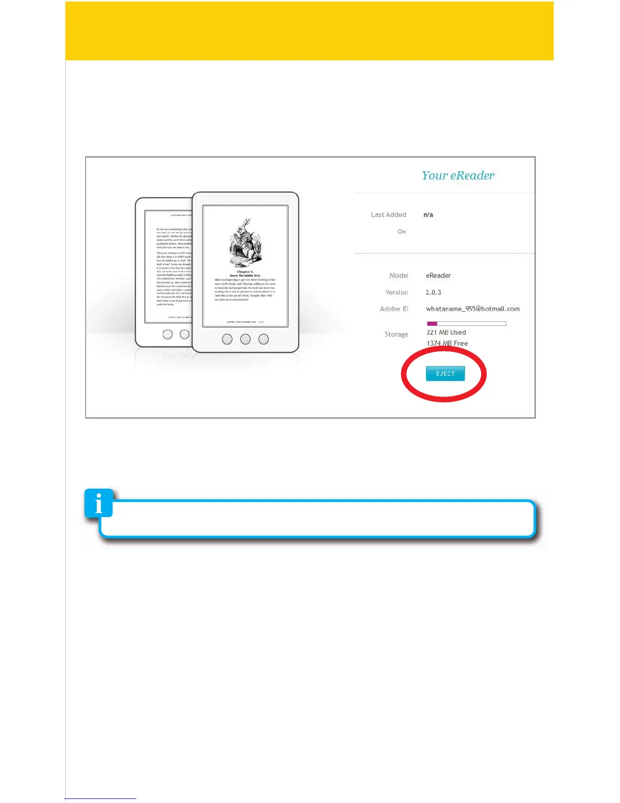 9. When the sync is completed, click eject before disconnecting the e-Reader