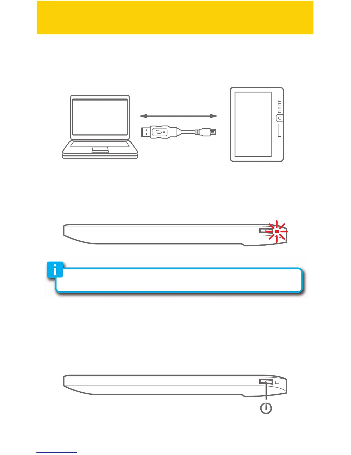 Connect the e-Reader to the computer using the included USB cable ( mini
