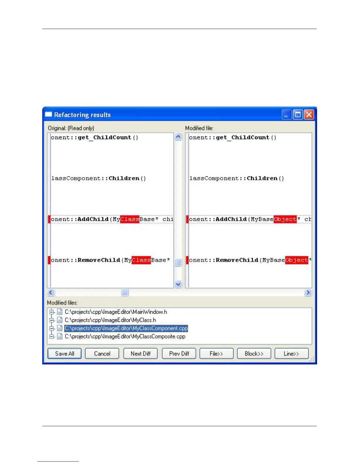 • The right pane shows the refactored file(s). For convenience, this pane can be edited.