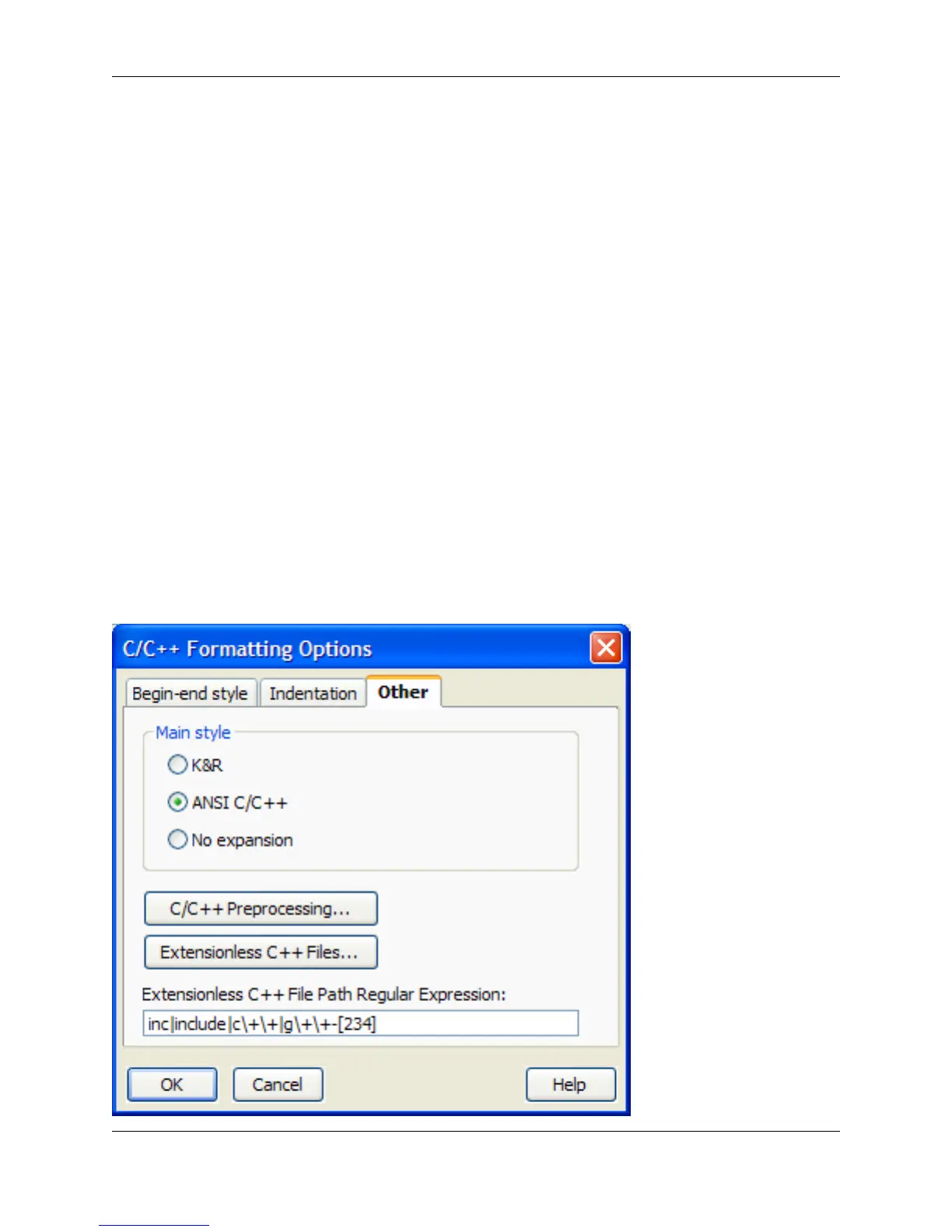 Figure 7.5. C/C++ Formatting Options: Other Tab