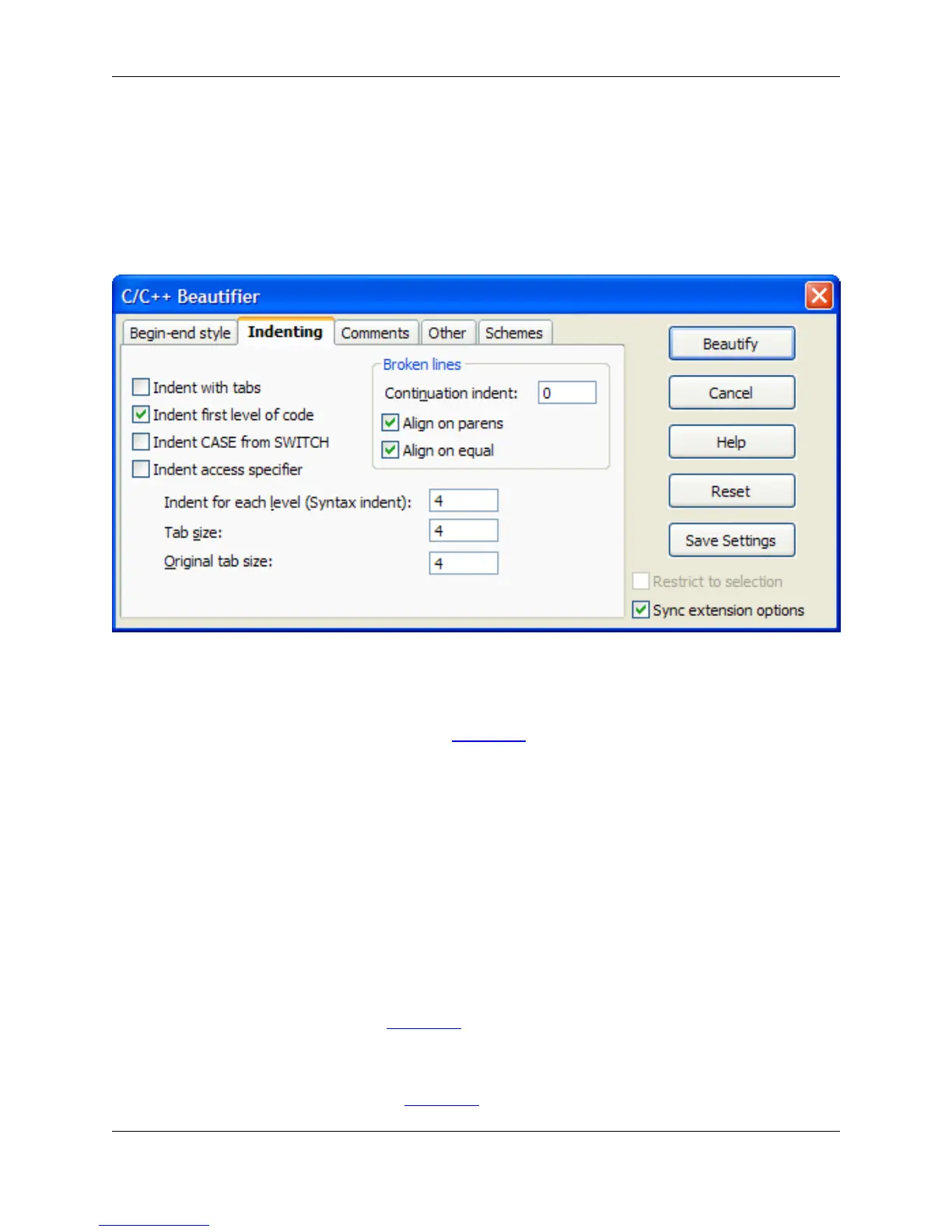 Figure 7.7. C/C++ Beautifier: Indenting Tab