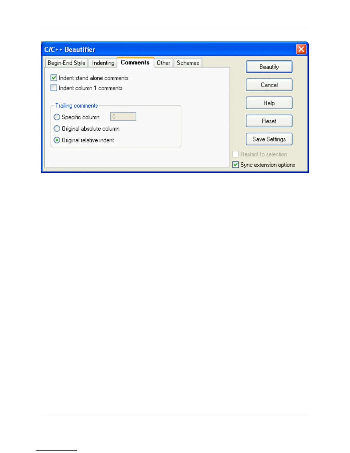 • Specific column - This text box specifies the column in which trailing comments should be placed.