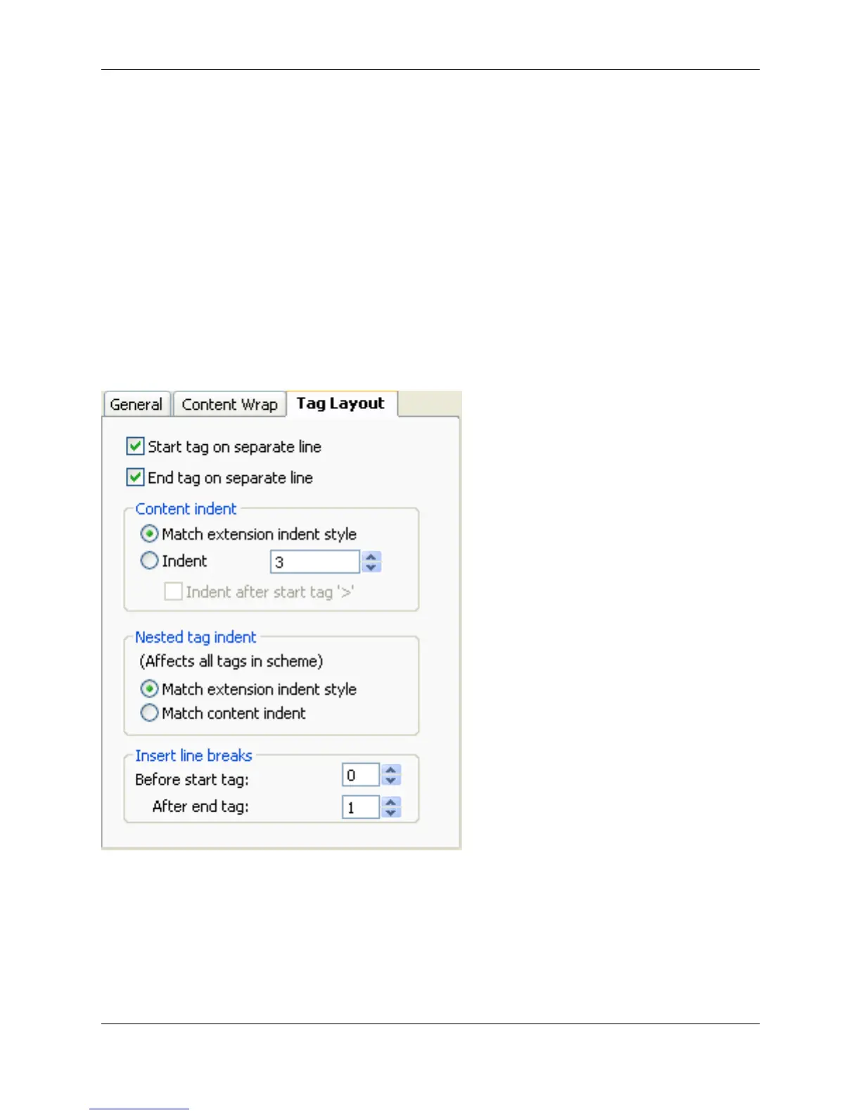 Figure 7.36. XML/HTML Formatting: Tag Layout Tab